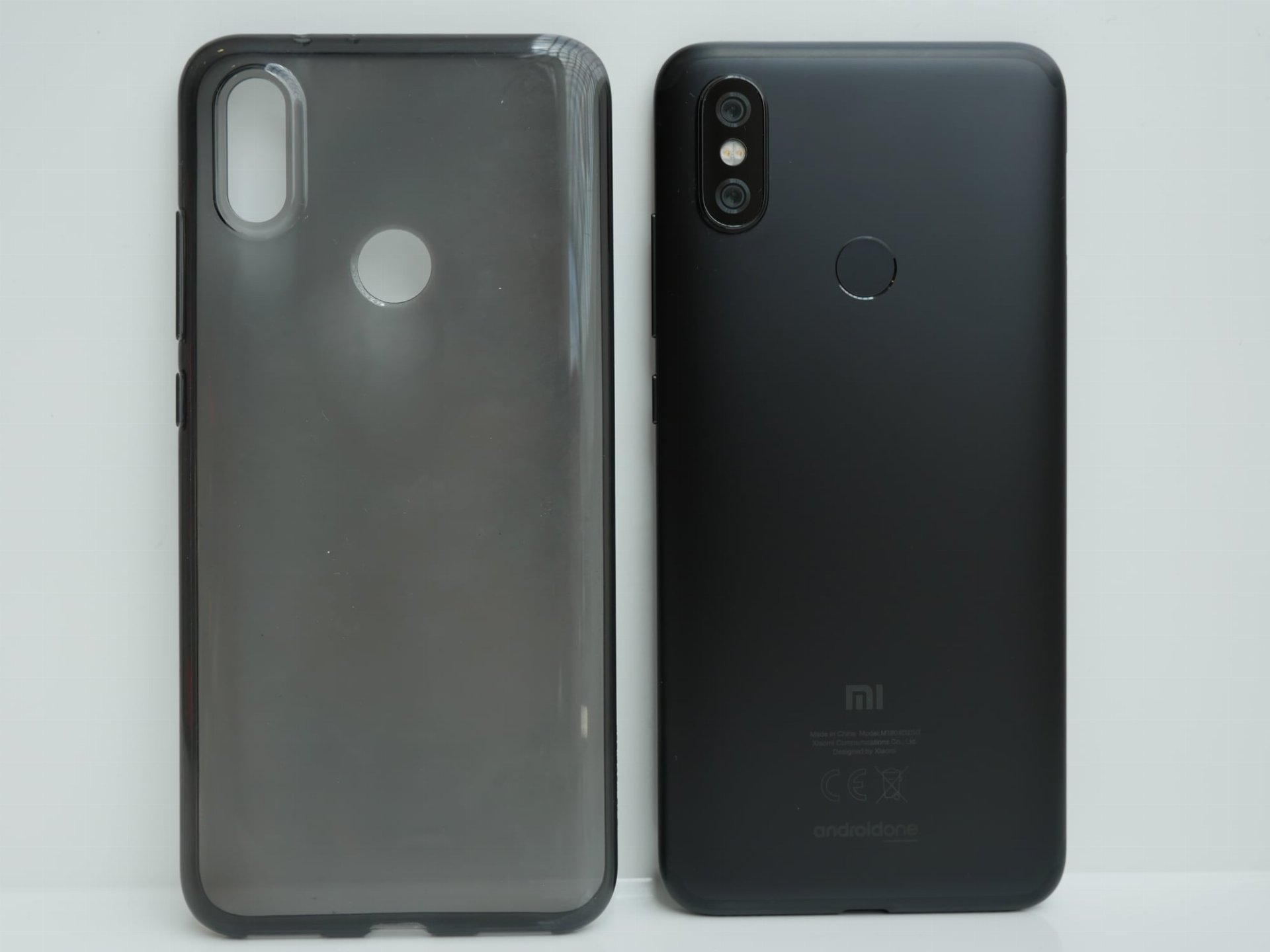 Jeśli obawiacie się o trwałość telefonu i jego kondycję w dłuższej perspektywie czasowej, z pewnością ucieszy Was miły dodatek w postaci silikonowego, ciemnego (dymionego) etui, które dorzucane jest do zestawu. Co istotne, jest tak dopasowane, by po założeniu na telefon wystający z obudowy podwójny obiektyw aparatu był odpowiednio chroniony – nie ma zatem mowy, by – korzystając z Mi A2 w oryginalnym etui – moduł z aparatem miał kontakt z jakimkolwiek podłożem (wystająca obramówka etui temu zapobiega). Jeśli jednak zdecydujecie się używać telefonu bez pokrowca, musicie się liczyć z możliwością zarysowania zarówno samej obudowy, jak i obiektywu aparatu – warto mieć to na uwadze.