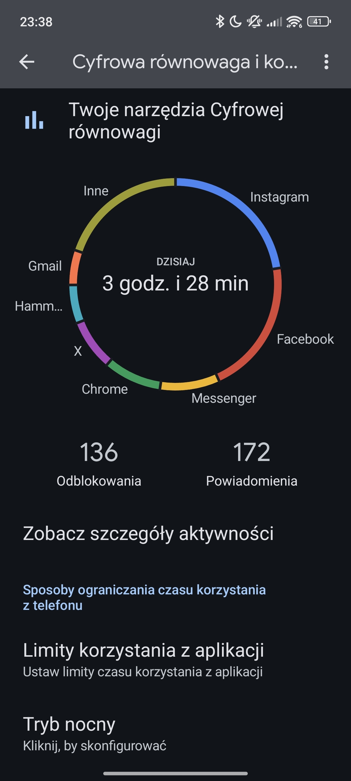 Xiaomi znów postanowiło utrudnić nam życie, usuwając z interfejsu możliwość podglądania konkretnych danych na temat czasu pracy ekranu podczas jednego cyklu, więc jedyne dane, jakimi mogę się podzielić, to te z Cyfrowej równowagi (nie do końca pokrywają się z SoT, ale lepszy taki odnośnik niż żaden).