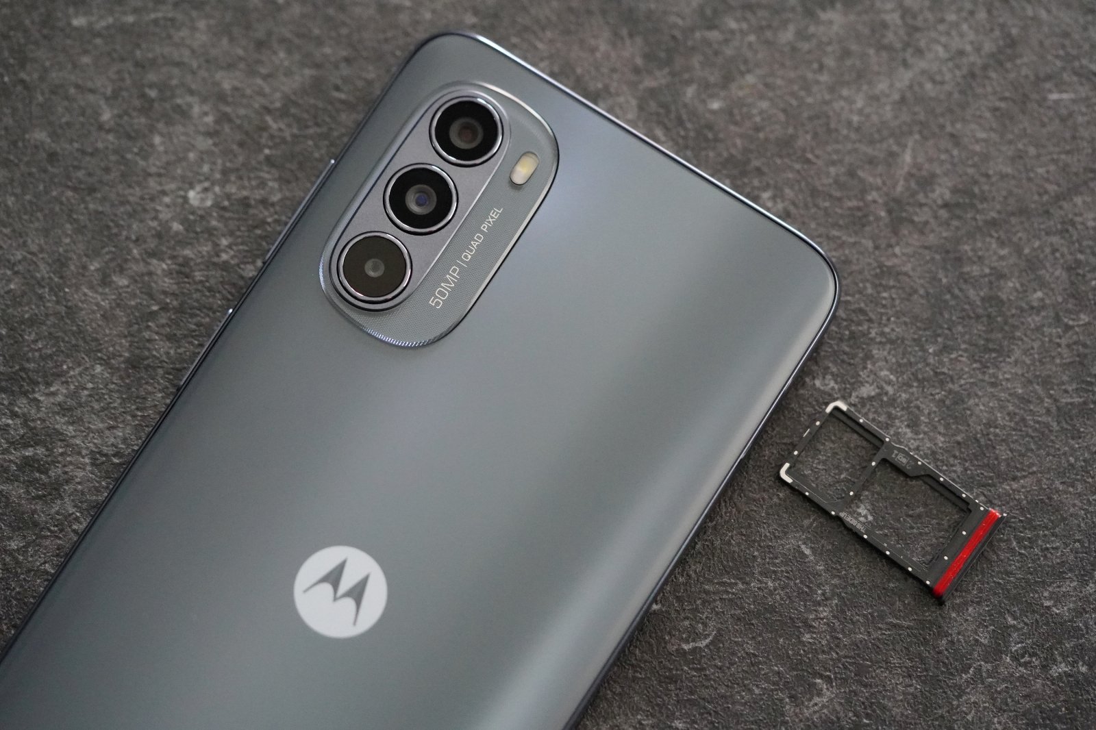 Jako osoba, która miała styczność z sytuowanym niżej moto g52, mogę powiedzieć, że czuć, że g62 wykonuje mały kroczek w kierunku bardziej „presitżowego” projektu. Plecki urządzenia pokryte są delikatnie mieniącym się plastikiem, a projekt wyspy wokół aparatów przypomina ten znany z droższych modeli Motoroli.