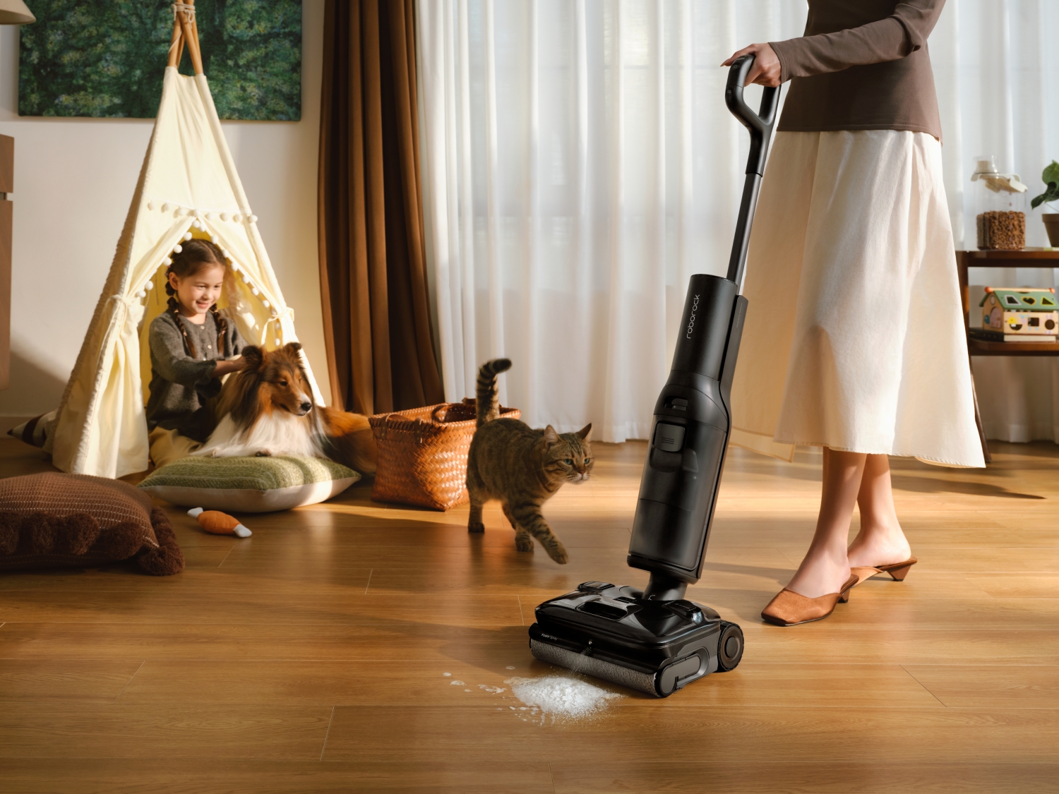 Zaletą z pewnością jest moc ssania wynosząca do 20000 Pa i system JawScrapers – użytkownik może liczyć na skuteczne usuwanie zabrudzeń, a także nie musi martwić się o plątanie włosów. Na wpisanie na listę plusów zasługuje też funkcja SlideTech 2.0, która wspiera w manewrowaniu oraz funkcja FlatReach 2.0 umożliwiająca sprzątanie pod niskimi meblami oraz mamy jeszcze automatyczny dozownik detergentu.