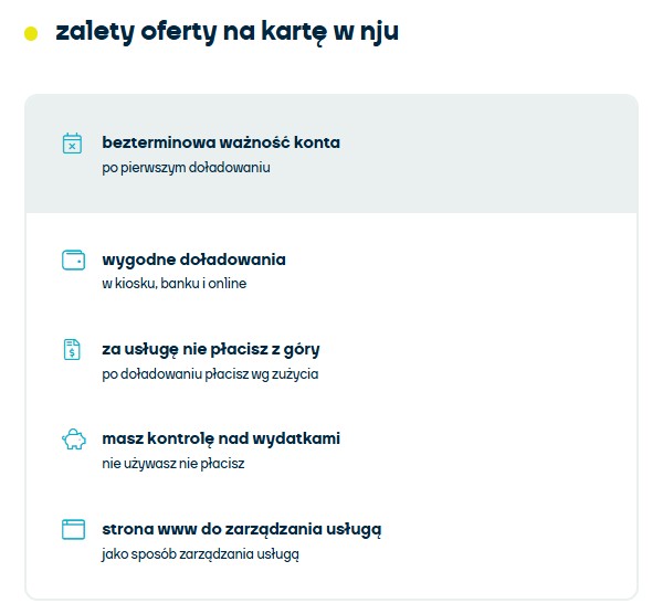 Zalety oferty na kartę w Nju (źródło: Nju)