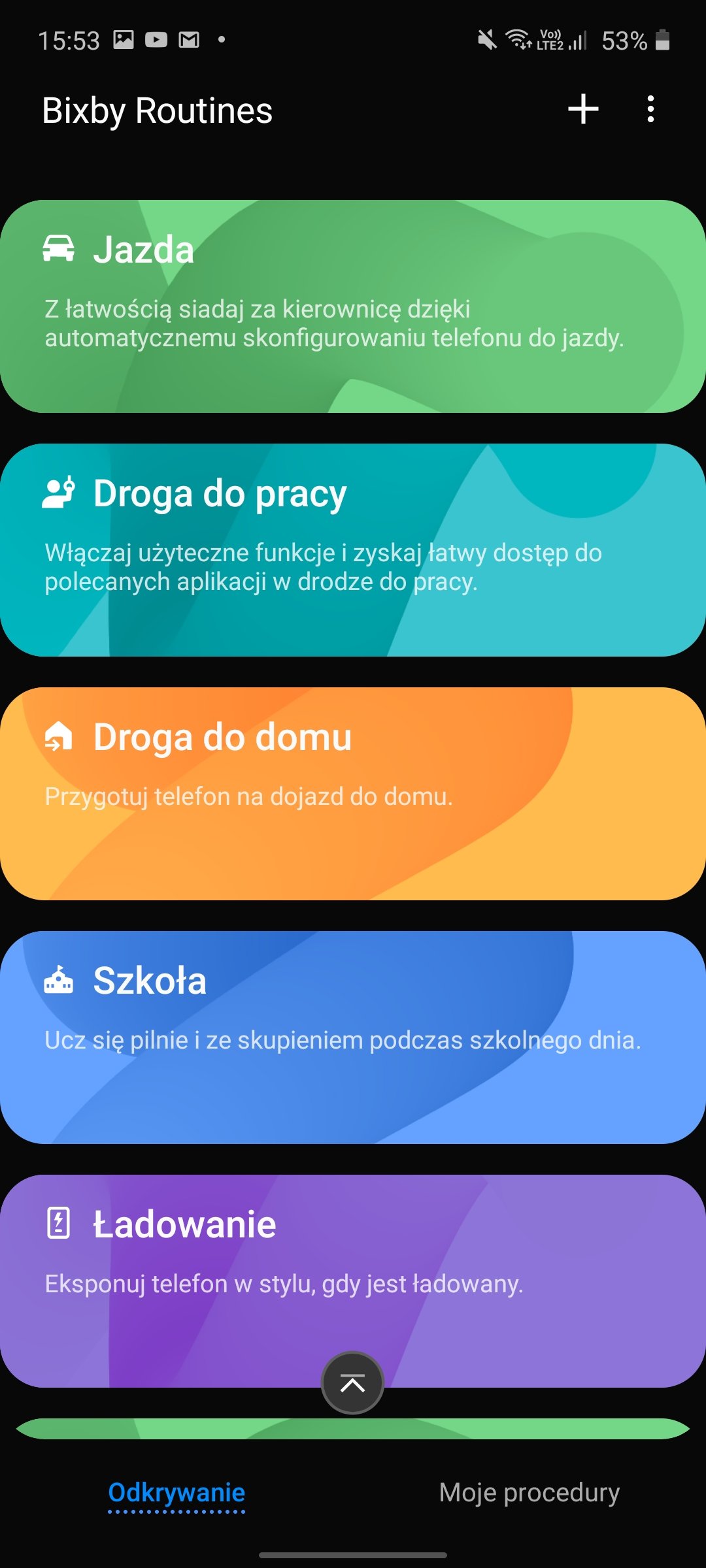 - Bixby Routines, czyli powiadomienia i proste akcje wykonywane automatycznie w określonych scenariuszach pracy (na przykład podczas ładowania, drogi do pracy, snu czy treningu),