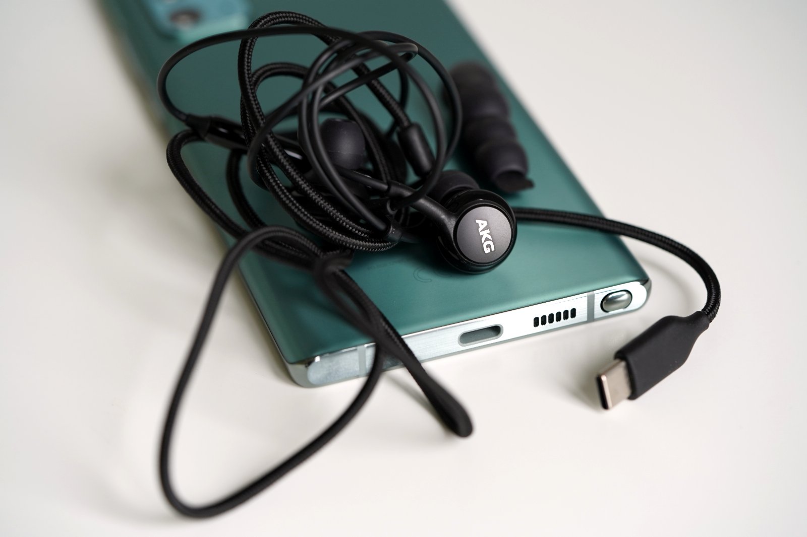 W zestawie sprzedażowym z telefonem dostajemy na szczęście słuchawki podłączane bezpośrednio przez USB C – w dodatku są całkiem niezłej jakości. Jeśli będziecie chcieli podłączyć swoje ulubione słuchawki, musicie zaopatrzyć się w przejściówkę z USB C na 3.5 mm jacka audio, bo takowa niestety nie znalazła się w pudełku ze smartfonem.