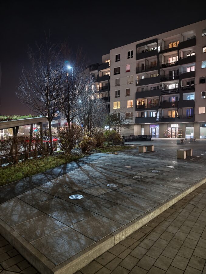 Jeśli chodzi o aparaty… Tu jest ciekawie. Jak się zaraz przekonacie, Vivo X300 rejestruje przyjemniejsze dla oka barwy, a same zdjęcia mają więcej detali. Co więcej, również zdjęcia z zoomem, nawet 10-krotnym, potrafią z Vivo wyjść bardzo dobrej jakości, podczas gdy Samsung Galaxy S25 w takich scenariuszach sobie wręcz nie radzi. Jak jednak zobaczycie (polecam w oryginalnej rozdzielczości), w nocnym zdjęciu z 10x Vivo X300 ma w sobie ogrom ingerencji AI, co nie każdemu przypadnie do gustu.