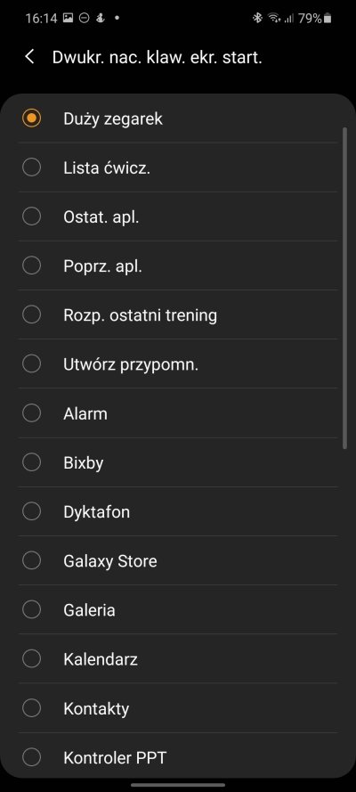 Poza obracanym pierścieniem do naszej dyspozycji zostały oddane dwa przyciski – górny to wstecz, dolny – włącznik i klawisz powrotu do ekranu domowego; jego dłuższe przytrzymanie domyślnie uruchamia Bixby, a dwukrotne naciśnięcie – wybraną opcję przypisaną w ustawieniach do “Dwukr. nac. klaw. ekr. start.” (dwukrotnego naciśnięcia klawisza ekranu startowego).
