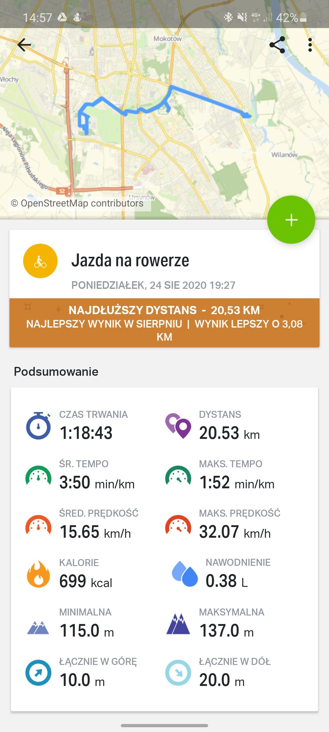 Jeśli chodzi o samą dokładność GPS-u, tu mam pewne zastrzeżenia i wątpliwości. Podczas ostatniej przejażdżki rowerem postanowiłam zmierzyć trasę zarówno Samsung Health z poziomu zegarka Galaxy Watch 3, jak i bezpośrednio na podłączonym do niego Galaxy Note 20 i odpalonym Endomondo. Przejechany dystans różni się o prawie 400 metrów. Sporo…
