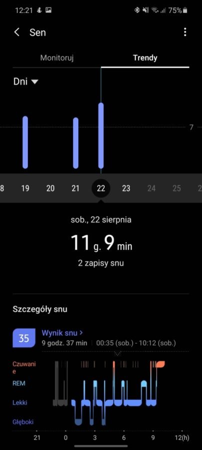 Oczywiście zegarek oferuje standardowy krokomierz, pozwalający monitorować naszą aktywność na bieżąco, jak również monitorowanie snu, które odkąd pamiętam działało nieźle i w dalszym ciągu tak pozostało.
