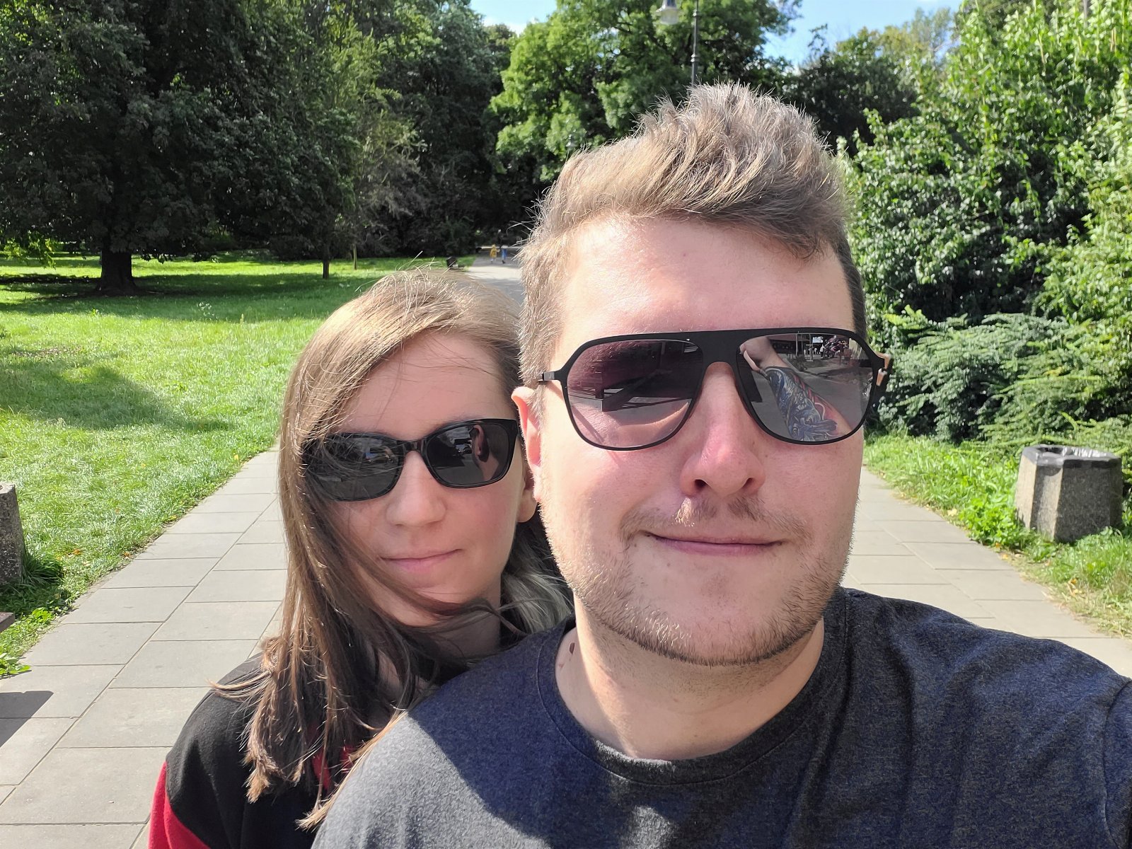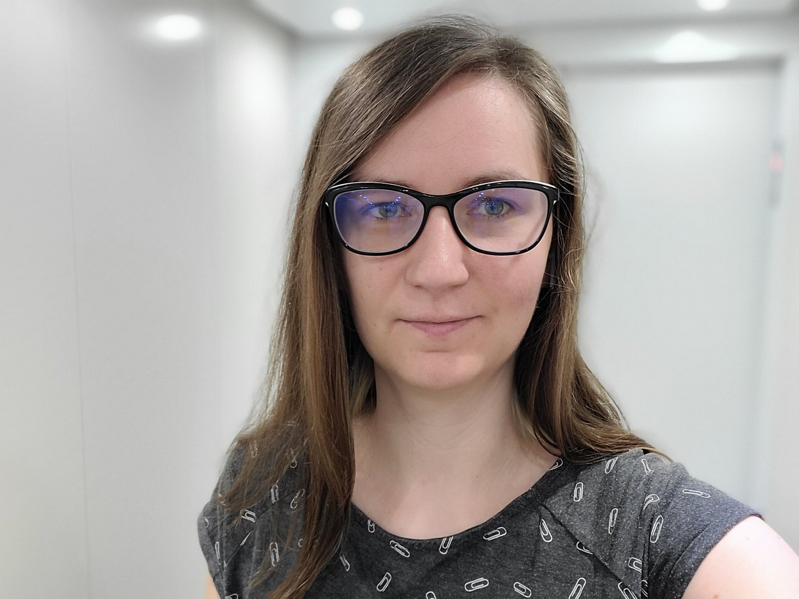 Przedni aparat, a właściwie dwa przednie aparaty (jeden jest nad zewnętrznym ekranem, drugi nad wewnętrznym – aczkolwiek nie sądzę, byście go używali do robienia selfie – próbowałam, to strasznie niewygodne), ma rozdzielczość 10 Mpix i jasność f/2.2. Jakość zdjęć z obu obiektywów jest dokładnie taka sama. W obu mamy dostępną opcję Live Focus, czyli tryb portretowy, z którego zdjęcia wynikowe są całkiem niezłe, co zresztą możecie zobaczyć poniżej.
