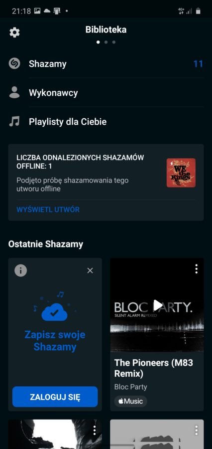 O ile korzystanie z Shazama nigdy nie wymagało zakładania konta, tak zalogowanie się do aplikacji przez adres mailowy lub Facebooka umożliwia gromadzenie historii wyszukiwanych utworów w chmurze, co bywa przydatne, gdy chcemy wrócić do rozpoznanego wcześniej kawałka w późniejszym czasie, ale na innym urządzeniu.