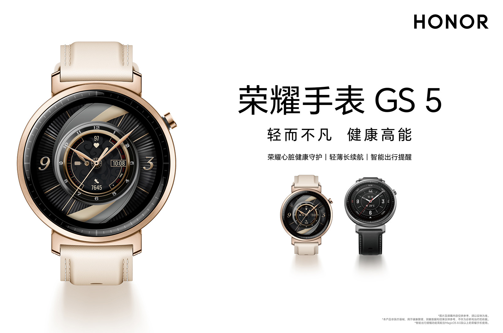 Honor Watch GS 5 ma jedynie 9,9 mm grubości, znajduje się zatem w gronie najsmuklejszych smartwatchy na rynku. Jego bezel został wykonany ze stopu aluminium, a pasek – z prawdziwej skóry. Zamysł był taki, by połączyć elegancję z funkcjonalnością, szczególnie w kontekście zdrowotnym.