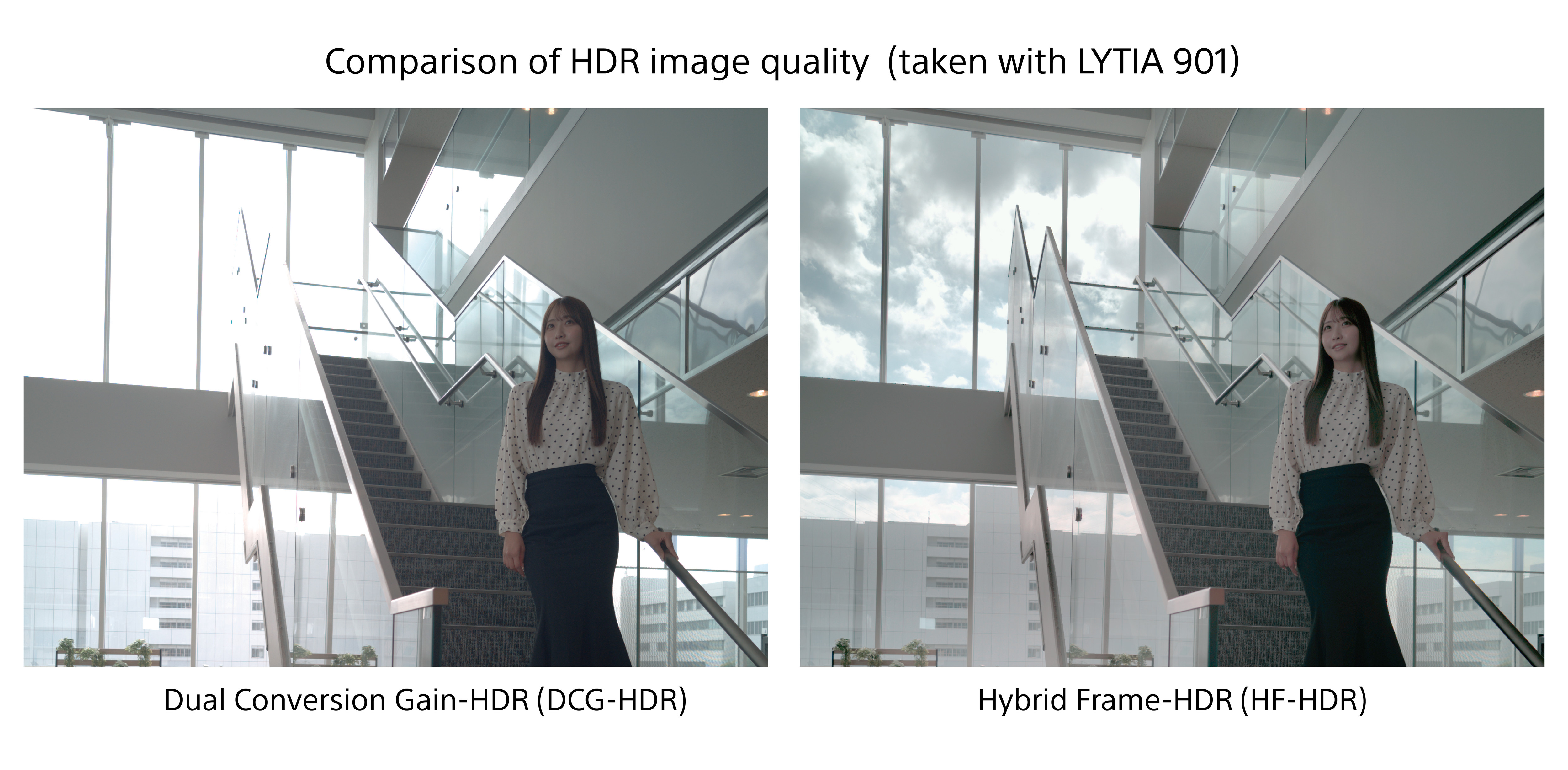 Japoński producent zwraca również uwagę na połączenie dwóch technologii HDR: Dual Conversion Gain oraz Hybrid Frame. Dzięki temu ostrość i kontrast mają reprezentować bardzo wysoki poziom. Sony chwali się jeszcze zakresem dynamiki, przekraczającym 100 dB (co można przełożyć na 17 stopni przysłony) i tym samym skuteczną redukcją prześwietlenia zarówno jasnych, jak i ciemnych obszarów kadru.