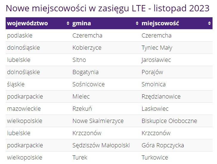 Aktualnie w zasięgu LTE tego operatora znajduje się 3420 miejscowości powyżej 1 tys. mieszkańców, w tym 403 miast powyżej 10 tys. mieszkańców.