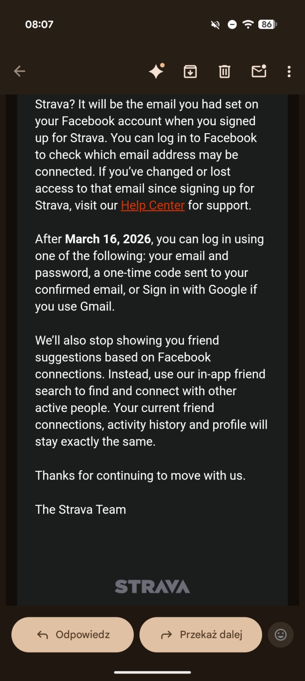 Strava wysyła do użytkowników wiadomości, w których informuje o usunięciu jednej z metod logowania. Oto, co należy wiedzieć.
