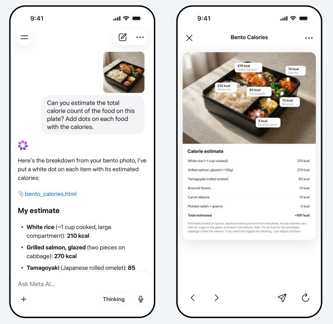 Technologia Muse Spark oferuje też silną percepcję multimodalną. Dzięki niej Meta AI ma widzieć i rozumieć to, na co patrzy użytkownik. Firma twierdzi, że wystarczy zdjęcie produktów np. na półce w sklepie, aby sztuczna inteligencja przeanalizowała, zidentyfikowała i oceniła przedmioty pod wybranym przez użytkownika kątem. Z pomocą aplikacji możliwe jest też zeskanowanie konkretnego produktu i sprawdzenie go jak wypada na tle konkurencyjnych ofert.