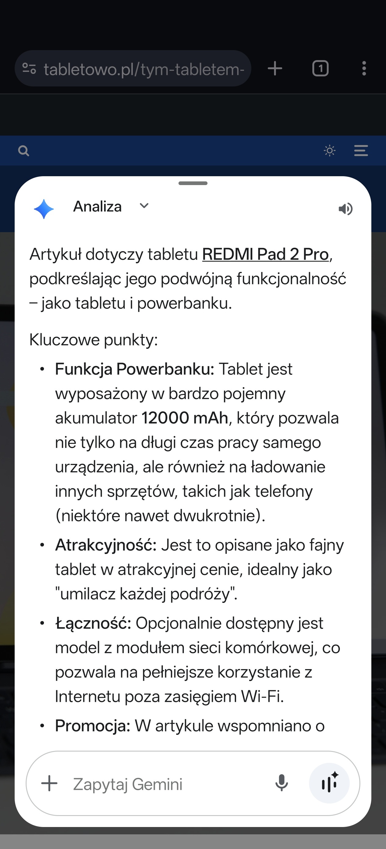 Google udostępniło też funkcję podsumowywania zawartości strony w przeglądarce Google Chrome. Nazywa się ona Streść stronę i wykorzystuje model Gemini 2.5 Flash (nawet jeśli użytkownik wybrał model Gemini 2.5 Pro w aplikacji Gemini).