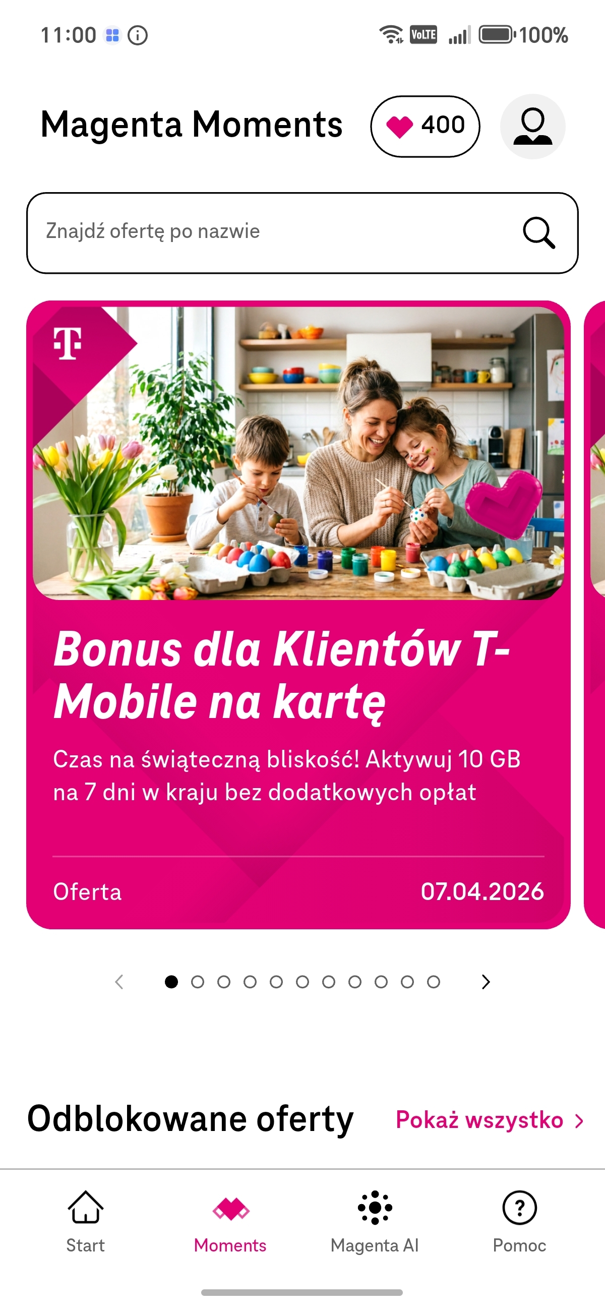 Bony na 10 złotych można wykorzystać na artykuły spożywczo-gastronomiczne oraz zostaną skierowane do klientów bezpośrednio w aplikacji Mój T-Mobile, w zakładce Magenta Moments, jako zaproszenia. Kody będą dostępne w dniach od 30 marca do 6 kwietnia 2026 roku. Odebrany kupon można wykorzystać w sklepie stacjonarnym sieci Żabka (z wyłączeniem placówek Żabka Nano i sklepów mobilnych) do końca czerwca 2026 roku.