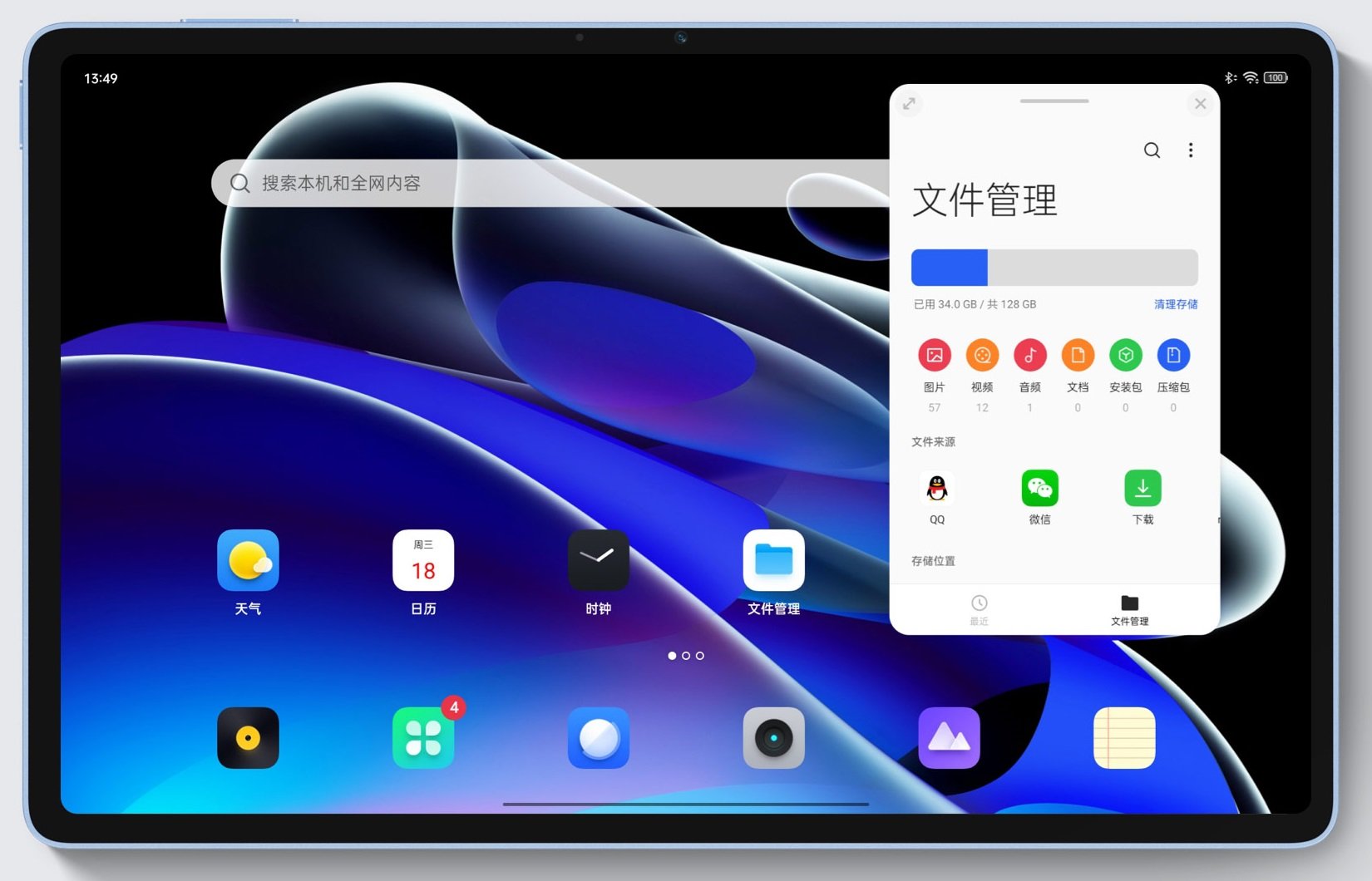 - dzielenie ekranu i możliwość korzystania z aplikacji w pływającym oknie oraz wysuwany od boku dok z ustalonymi wcześniej przez użytkownika programami,