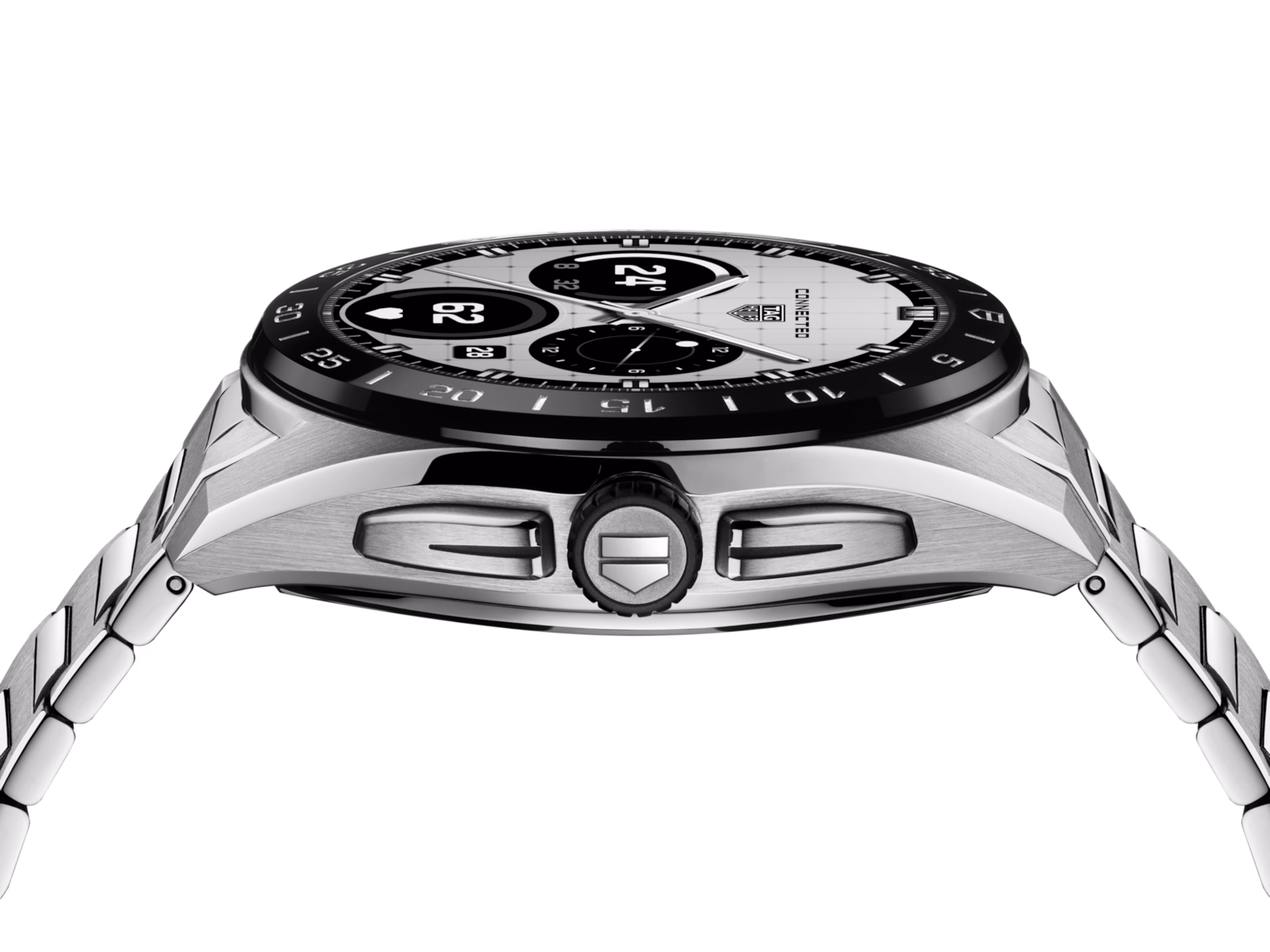 Zegarek TAG Heuer Connected Calibre E5 to najwyższej klasy materiały i klasyczny design. Obudowa ze stali nierdzewnej lub tytanu, ceramiczny bezel i szafirowe szkło to standard w ofercie marki. Wersja 45 mm kosztuje od 1900 dolarów (~7000 złotych), a mniejsza 40 mm od 1800 dolarów (~6600 złotych).