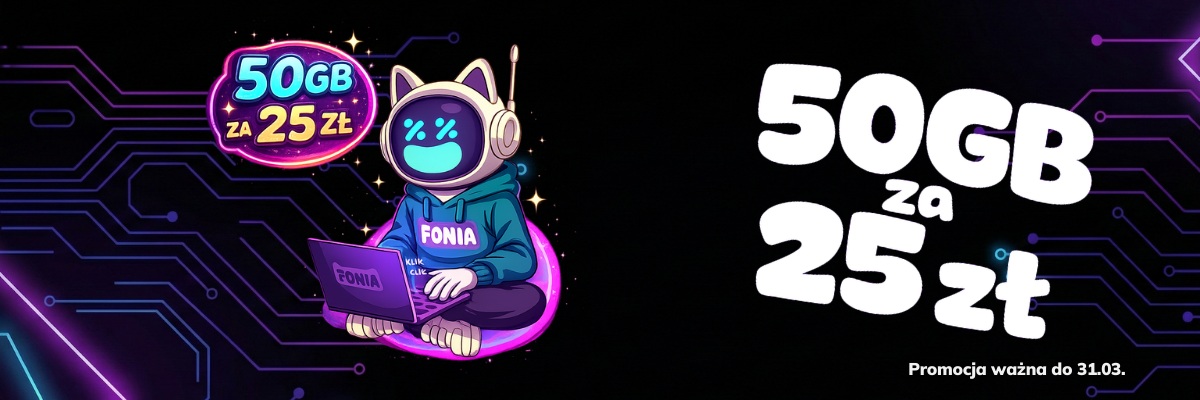 Aby skorzystać z okazji konieczne jest założenie konta, zamówienie karty SIM, eSIM lub przeniesienie aktualnie użytkowanego numeru do sieci Fonia. W ramach najnowszej okazji Fonia proponuje paczkę internetu 50 GB za 25 złotych miesięcznie. Pakiet gigabajtów przyznawany jest na cały czas korzystania z usługi.