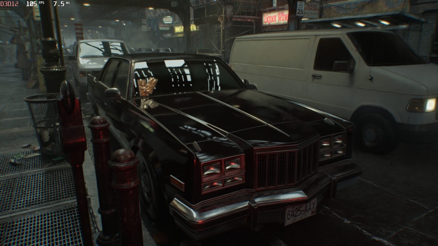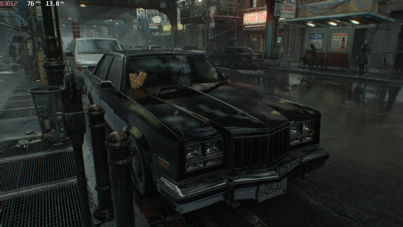 Ten cały Path Tracing to w sumie taki Święty Graal grafiki i ostateczne pożegnanie z udawanym oświetleniem. Zamiast ręcznie malować cienie, gra po prostu symuluje miliony promieni świetlnych. Światło odbija się od wszystkiego i przenosi kolory dokładnie tak jak w realu, co daje fotorealizm. Zresztą, doskonale widać to na dodanych przeze mnie screenach – zwróćcie uwagę przede wszystkim na odbicie w lustrze (lub jego brak) czy jakość refleksów na karoserii auta.