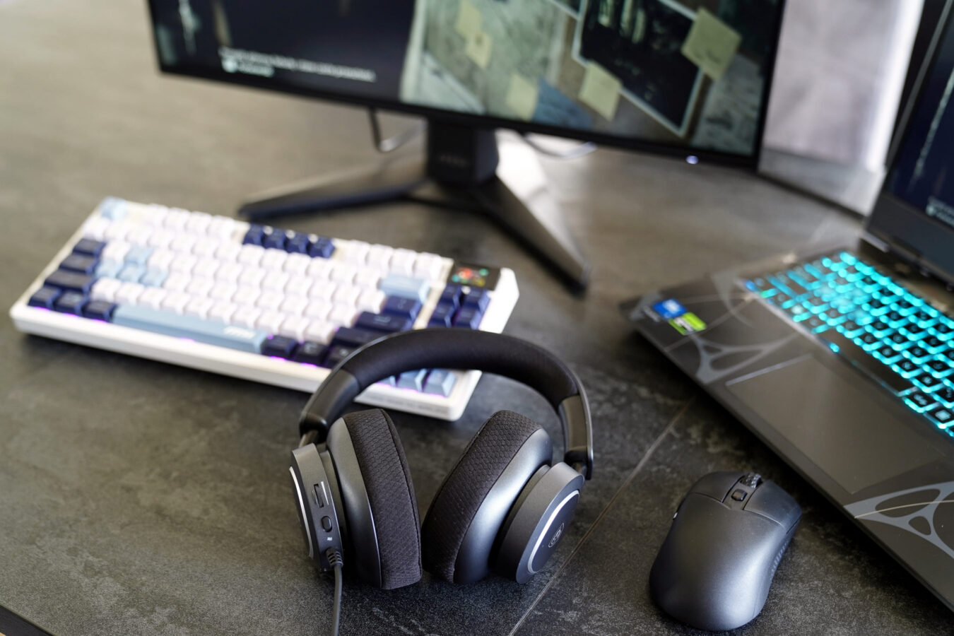 W moje ręce na czas tworzenia niniejszego materiału trafił monitor MSI G242L E14, słuchawki MSI Maestro 300, klawiatura MSI Forge GK600 TKL Wireless oraz myszka MSI – Versa 300 Elite Wireless.