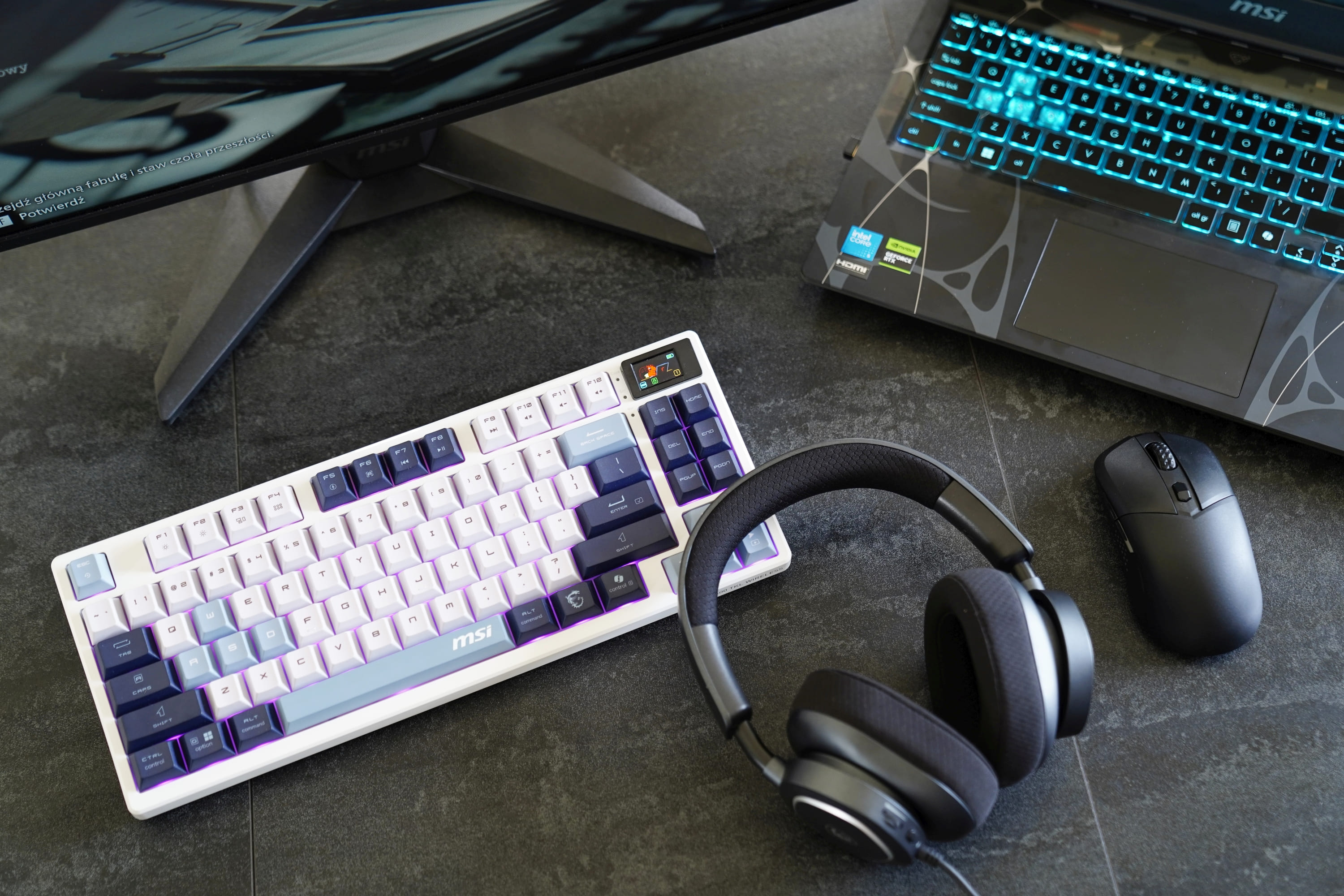 No bo właśnie – warto pamiętać, że MSI to nie tylko laptopy. Marka ma w ofercie również monitory, słuchawki, myszki czy wreszcie klawiatury. Jeśli zatem lubicie mieć cały setup jednego producenta, to z MSI jak najbardziej możecie po taki sięgnąć.