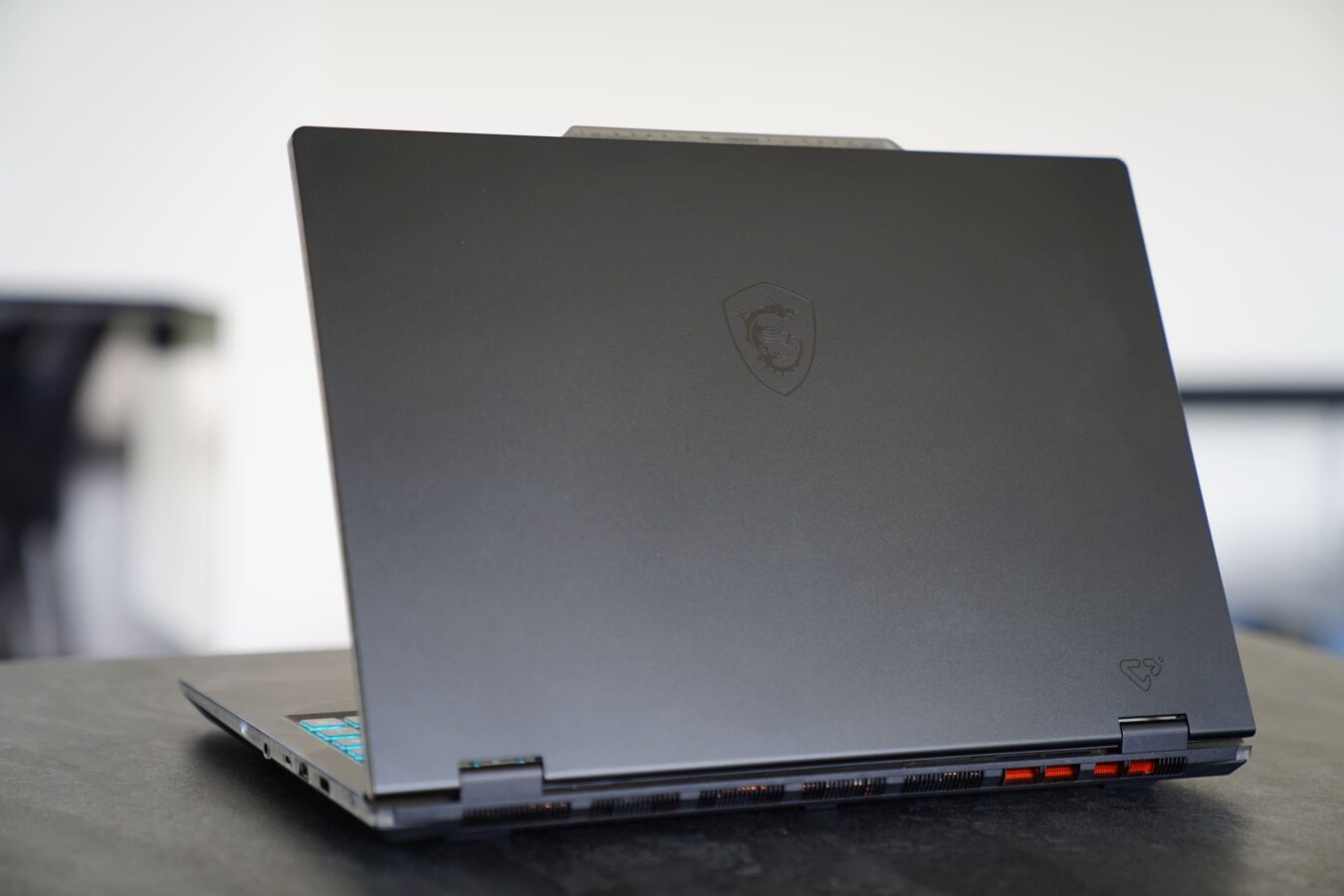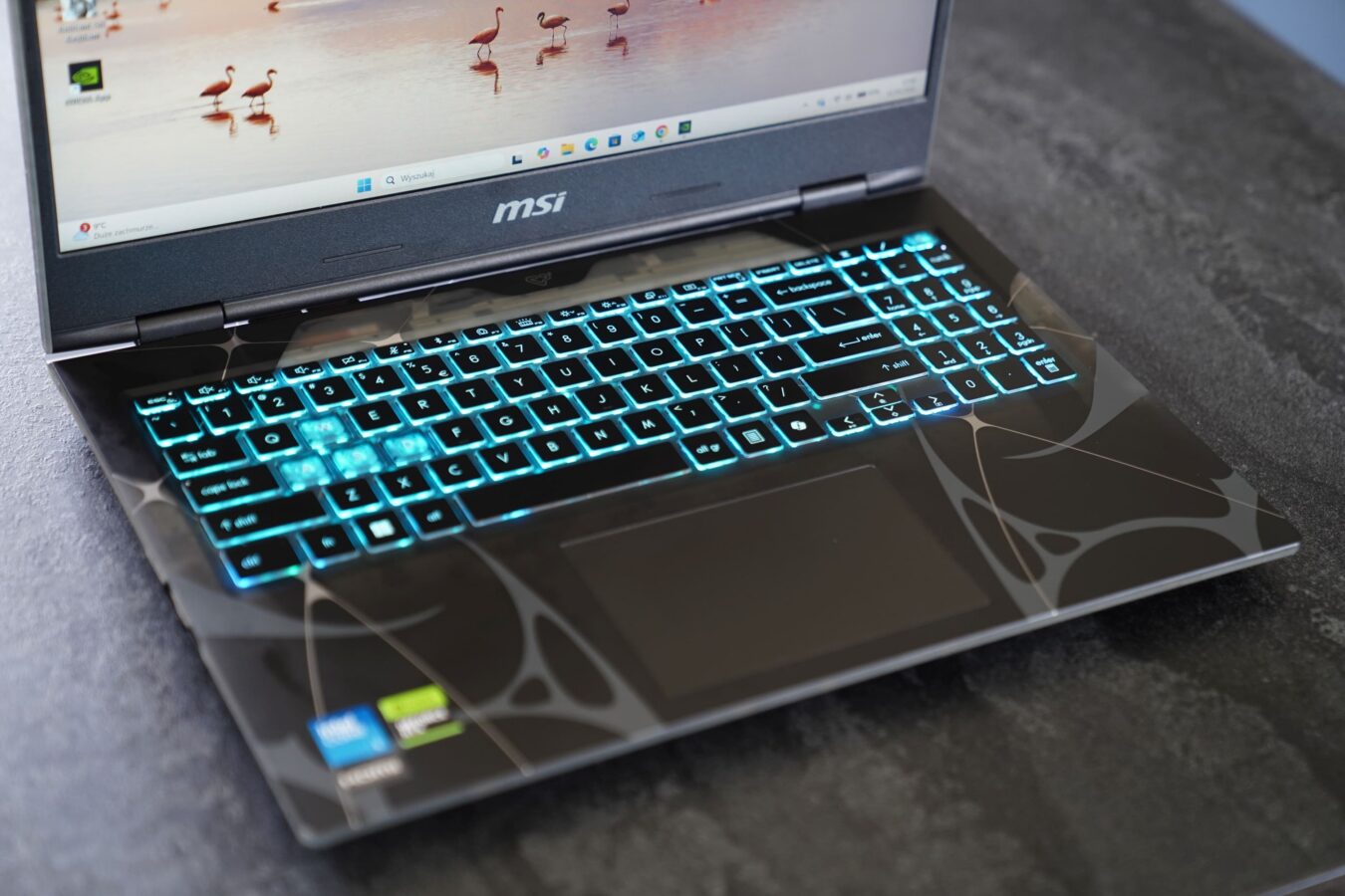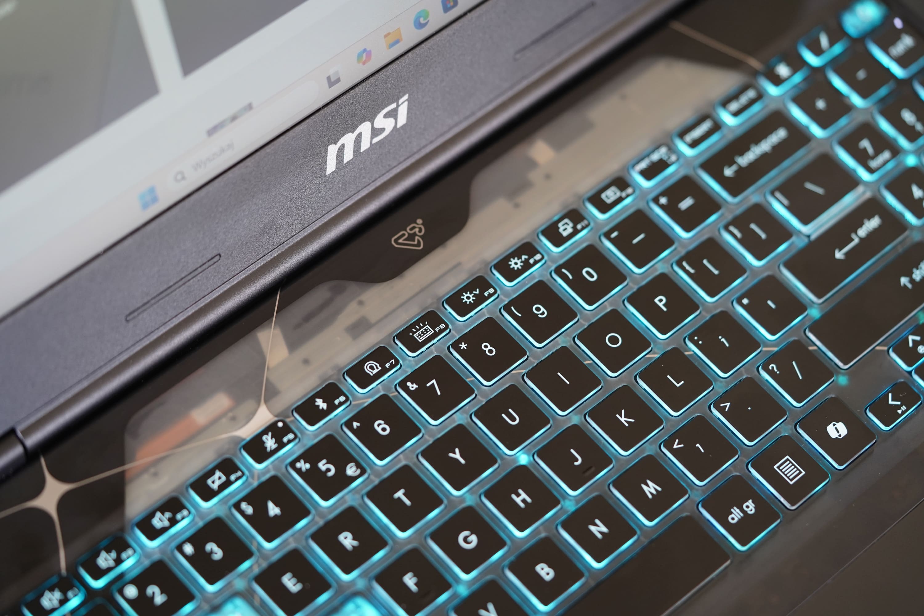 I tu, cały na półprzezroczysto, wkracza MSI Cyborg 15, który kusi swoim nietypowym, choć może raczej nietuzinkowym to lepsze określenie, designem. Nie krzyczy z daleka, że to gamingowy potwór – nie ma ogromnych otworów wentylacyjnych, agresywnych detali obudowy czy wreszcie krzykliwego RGB. To sprzęt, który na pierwszy rzut oka zdaje się być nudny, ale zdecydowanie zyskuje przy bliższym poznaniu.