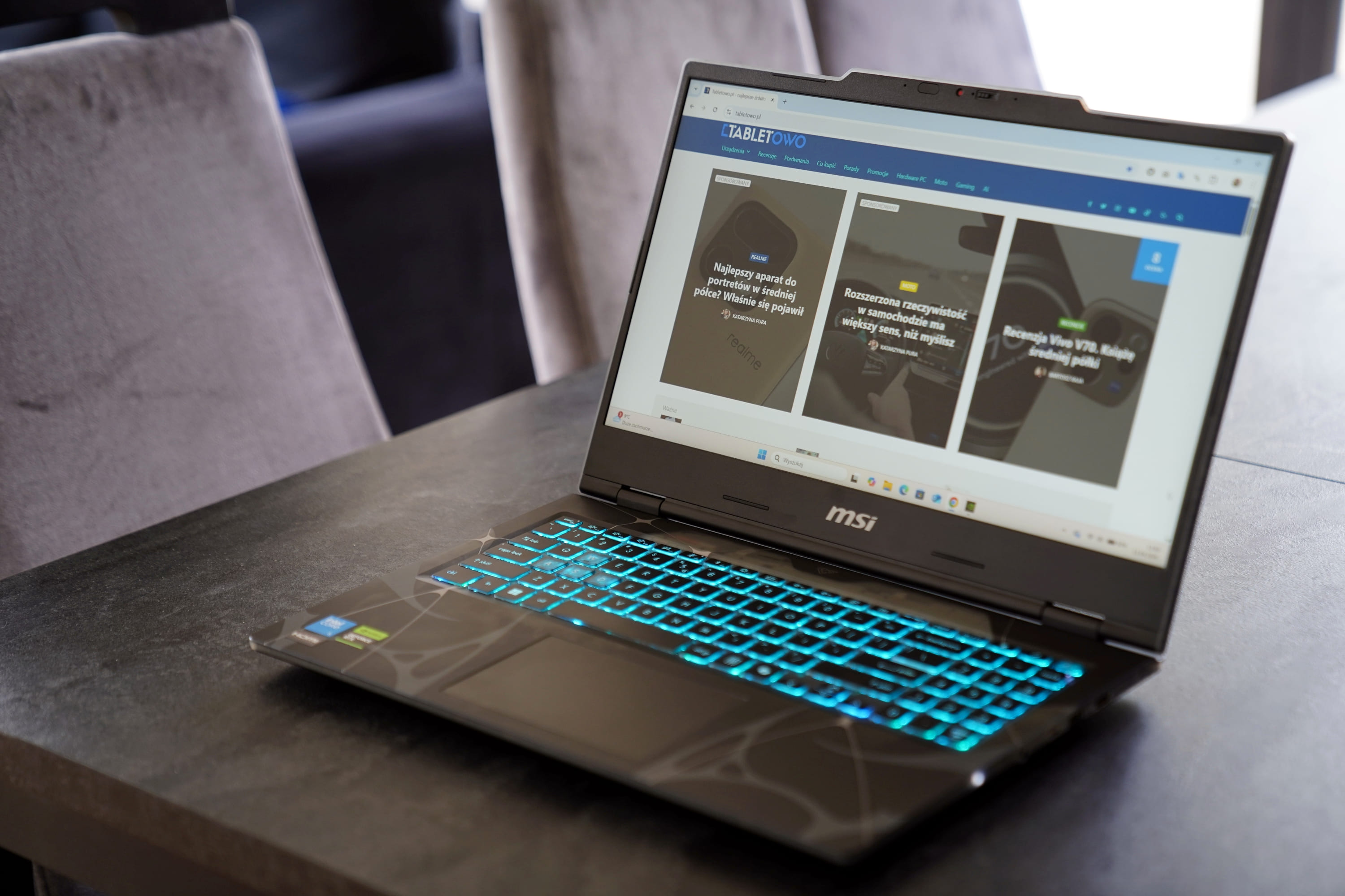 Codzienna praca biurowa na MSI Cyborg 15 przebiegała bezproblemowo i cicho (wiadomo, że to się zmieni po odpaleniu gier – co jest całkowicie naturalne). Co prawda w większości nie było to nic nadzwyczajnego, to jednak z pewnością słyszeliście, że niektóre laptopy potrafią się dusić nawet po odpaleniu wielu kart w Chrome. Spokojnie, to nie jest jeden z tych przypadków – tu nic takiego nie miało miejsca.