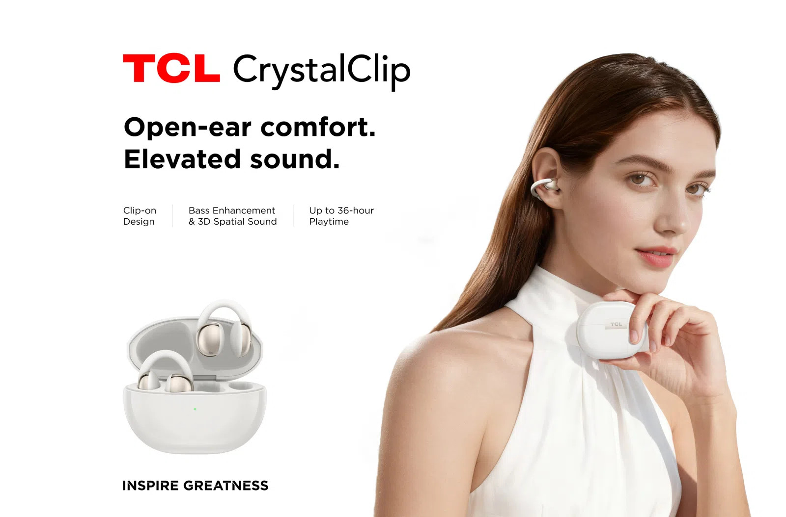 Wśród nowości pojawiły się również otwarte słuchawki TCL CrystalClip wykorzystujące technologię przewodnictwa powietrznego – coraz popularniejszą, przede wszystkim wśród aktywnych użytkowników. Pozwala cieszyć się muzyką i podcastami, nie zatykając kanału słuchowego i nie odcinając od dźwięków otoczenia.
