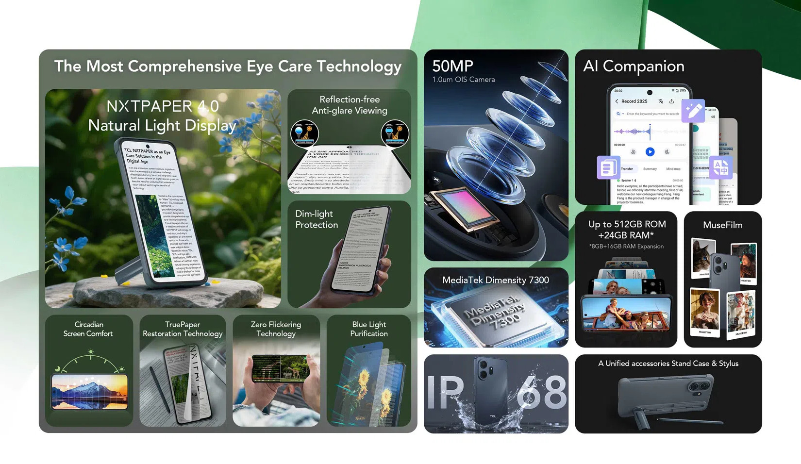 Wśród nich znalazł się topowy w katalogu tego producenta smartfon TCL Nxtpaper 70 Pro z ekranem Nxtpaper 4.0 o przekątnej 6,9 cala, rozdzielczości Full HD+ i częstotliwości odświeżania 120 Hz, a także przyciskiem umożliwiającym przełączanie się pomiędzy różnymi trybami wyświetlania (żywym, papierowym czy monochromatycznym). Urządzenie pozwala zatroszczyć się o wzrok i poprawia komfort codziennego korzystania.
