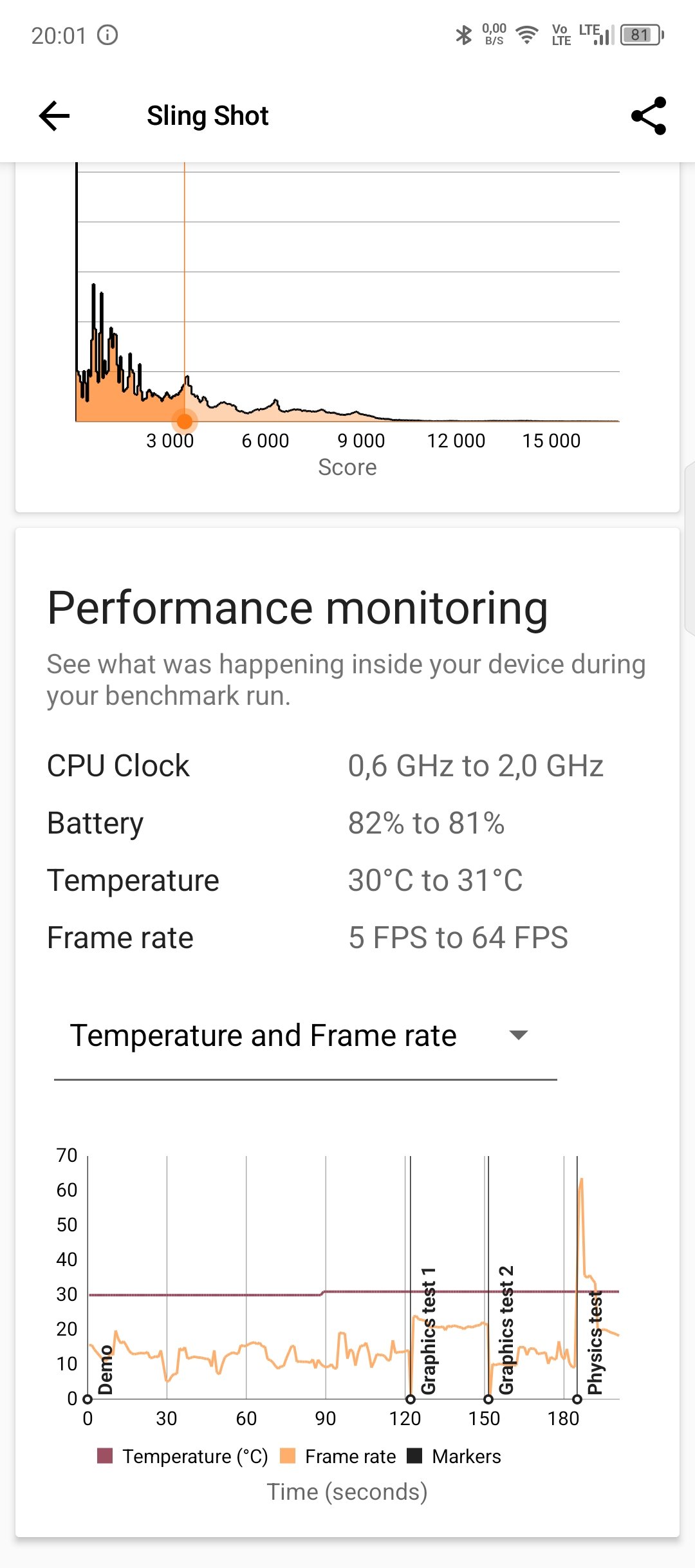 Jeżeli chodzi o suche testy – porównując wyniki z Geekbencha 6 z ww. Oppo czy Motorolą moto G72 widać lepsze osiągi w testach CPU, ale za to niższą punktację w kwestii GPU. Słabszą dyspozycję układu graficznego widać też na wynikach z 3DMarka.