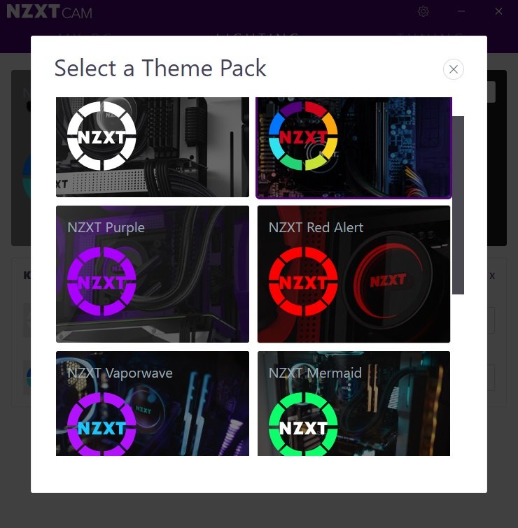 Nie jestem wielkim fanem podświetlenia podzespołów komputerowych, co może kłócić się trochę z obrazem entuzjasty, dla którego prawdziwe piękno stoi bardzo blisko co poniektórych modeli kart graficznych, jednak głównym powodem mojej niechęci jest niechlujna implementacja podświetlenia w wielu produktach, które wyglądają, jakby zostały wyrwane prosto z wiejskiej imprezy – niekoniecznie mój klimat. Jednak Kraken X62 robi to naprawdę dobrze. LED-ów nie mamy wiele, gdyż te zamontowano jedynie w samej blokopompce, jednak to wystarcza, by nadać chłodzeniu charakteru. Po wyjęciu z pudełka domyślny motyw to podświetlane na biało logo producenta oraz biały, wędrujący dookoła niego pasek. Za pomocą CAM-a możemy to jednak zmienić wedle naszych upodobań. Do wyboru dostępnych jest kilka predefiniowanych motywów m.in. Spectrum Wave, Vaporwave, Red Alert, Mermaid. Te również wypadają bardzo dobrze, ale dla wielu i tak liczy się tylko możliwość konfiguracji swoich własnych ustawień. Jako ciekawostki dodano tu też reagowanie na temperatury GPU lub CPU, liczbę klatek na sekundę w grze lub natężenia dźwięku. Nie wiem jak wy, ale podczas gry wolę jednak patrzeć na monitor, niż schylać się i zerkać przez szybkę na moje chłodzenie, ale co kto lubi.