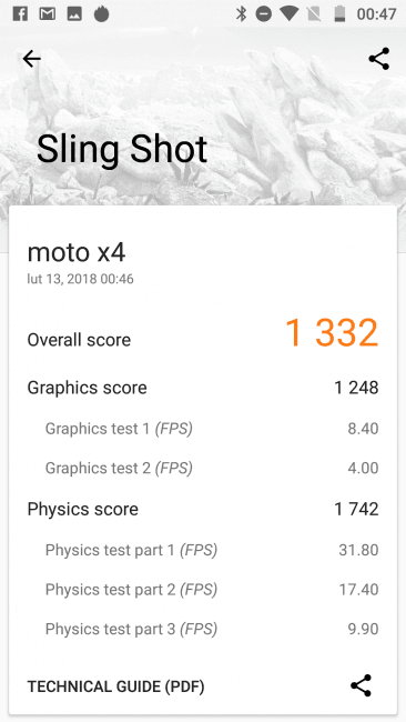 W testach syntetycznych Motorola Moto X4 poradziła sobie następująco:
