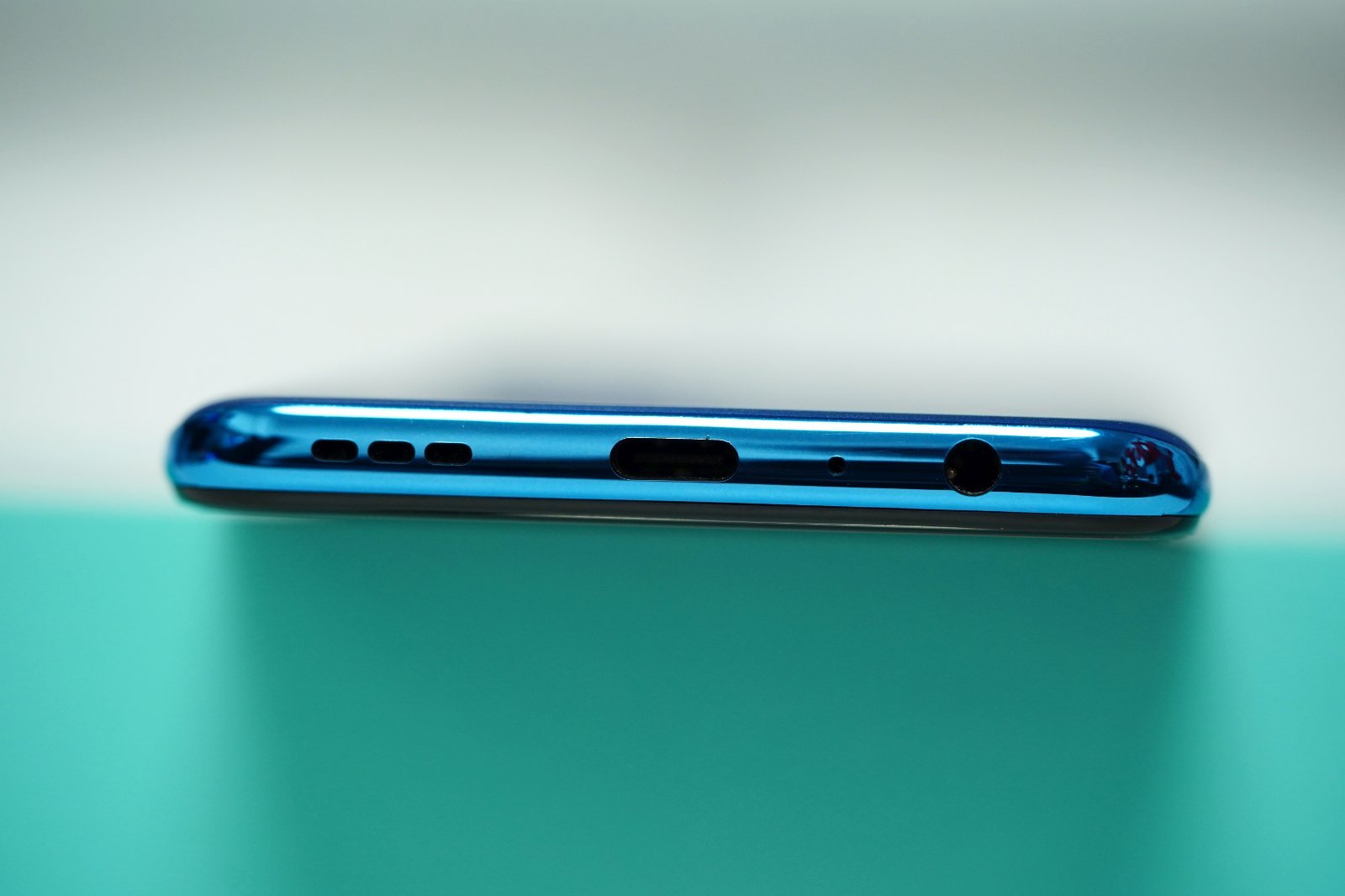 Ciekawiej jest na dole, gdzie – oprócz centralnie umieszczonego portu USB typu C, znajdującego się po prawej jego stronie głośnika i po lewej mikrofonu, możemy odnaleźć zapomniane już wyjście audio 3,5 mm. Trudno nie docenić producenta za to, że znalazł on w urządzeniu miejsce na podłączenie przewodowych słuchawek.