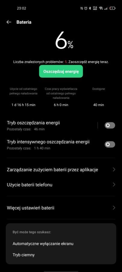 Cieszę się, że oprogramowanie umożliwia zastosowania ciemnego motywu. Kiedy ostatnio testowałem smartfon Oppo, nie było to możliwe. Teraz nie musimy martwić się o to, że jasny interfejs będzie powodował ewentualny dyskomfort. Opcja ta jest również ważna z drugiego powodu – ciemny motyw wraz z AMOLED-em może dobrze wpłynąć na czas pracy na baterii.