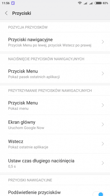 - Przyciski – możemy przypisywać różne akcje do dłuższego przytrzymania klawiszy.