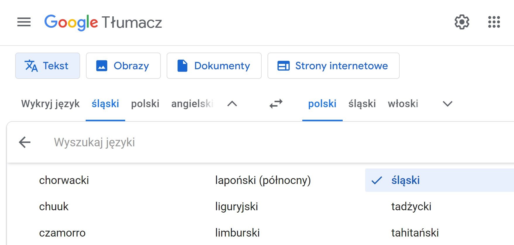 Nie od dziś wiadomo, że Tłumacz Google to narzędzie do przełamywania barier językowych. Dzięki niemu możemy nawiązać kontakt z większością napotkanych na świecie osób. Dlaczego tylko „z większością”? Ano dlatego, że lista obsługiwanych języków jest ograniczona i nie obejmuje wszystkich znanych na świecie. To się jednak sukcesywnie zmienia – do dotychczasowych 133 języków dodano aż 110 kolejnych propozycji – wśród nich znalazł się język śląski.