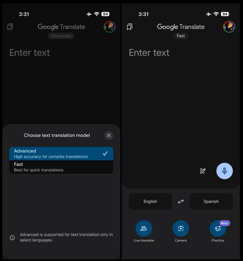 Co ważne, w dolnej części ekranu Google wyświetla adnotację, że funkcja zaawansowana jest obsługiwana tylko w przypadku tłumaczenia tekstu w wybranych językach. Póki co możliwość wyboru trybu zauważyli posiadacze wybranych urządzeń z systemem iOS. Warto też wspomnieć, iż nie jest jeszcze jasne, czy opcja ta nie będzie powiązana z płatną wersją np. w ramach subskrypcji Google AI Pro.