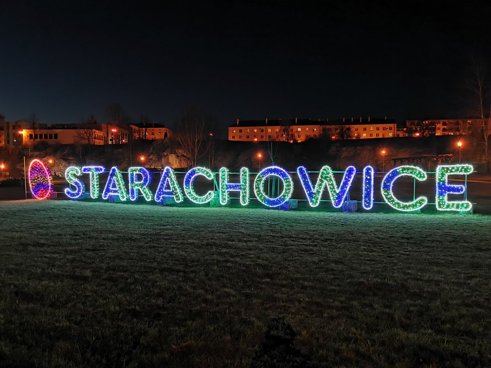 Jeżeli już przy lampach jesteśmy, to nie sposób nie wspomnieć o flarach ze źródeł światła, które po prostu znikają lub zmniejszają się w znacznym stopniu. Tutaj dobrym przykładem jest nieszczęsna trzynastka, która w trybie automatycznym sprawia wrażenie miksu mydlano-mlecznego, a w trybie nocnym nabiera szczegółowości. Dodatkowo, lampki budujące napis Starachowice tracą charakterystyczną poświatę. Niestety, ostateczny efekt nie zawsze jest tak piorunujący – zdarza się tak, że wokół źródeł światła widoczna jest specyficzna obwódka zwana efektem halo, której daleko do estetyki oferowanej przez dobre zdjęcie. Oczywiście nie da się uniknąć nieuniknionego i jeżeli fotografia obejmuje niebo, to musimy liczyć się z ogromną, okropnie zaszumioną i ziarnistą powierzchnią. Całość tworzy bardzo nieestetyczne wrażenie, przez co należy głośno powiedzieć, że w niektórych przypadkach tryb nocny radzi sobie po prostu fatalnie.