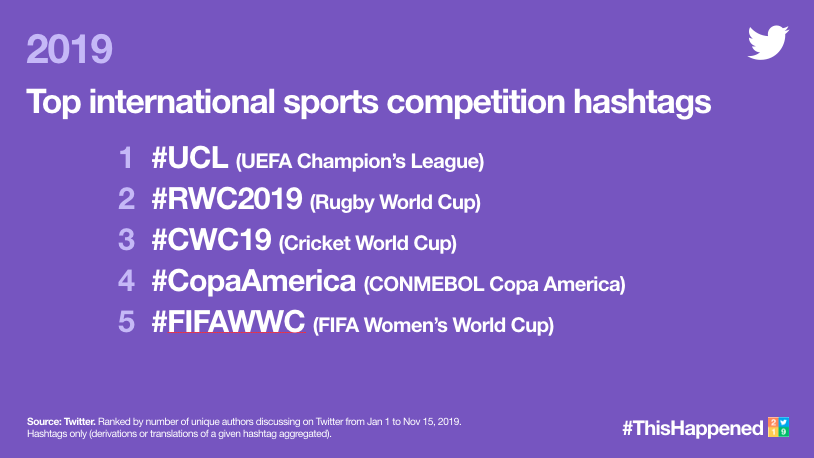 Spośród wykonawców muzycznych, Twitterianie najbardziej kochali rozmawiać o k-popowym BTS, ale niewiele mniej dyskutowano o Arianie Grande, Drake’u, Rihannie czy Cardi B. Drużyny sportowe, które uzyskały miano najbardziej popularnych w 2019 roku to FC Barcelona, Real Madryt i Manchester United. Popularnymi sportowcami na platformie okazali się amerykańska piłkarka Megan Rapinoe i Neymar. Ten drugi – podobno dlatego, że świetnie przyciągał uwagę lipnymi kontuzjami.
