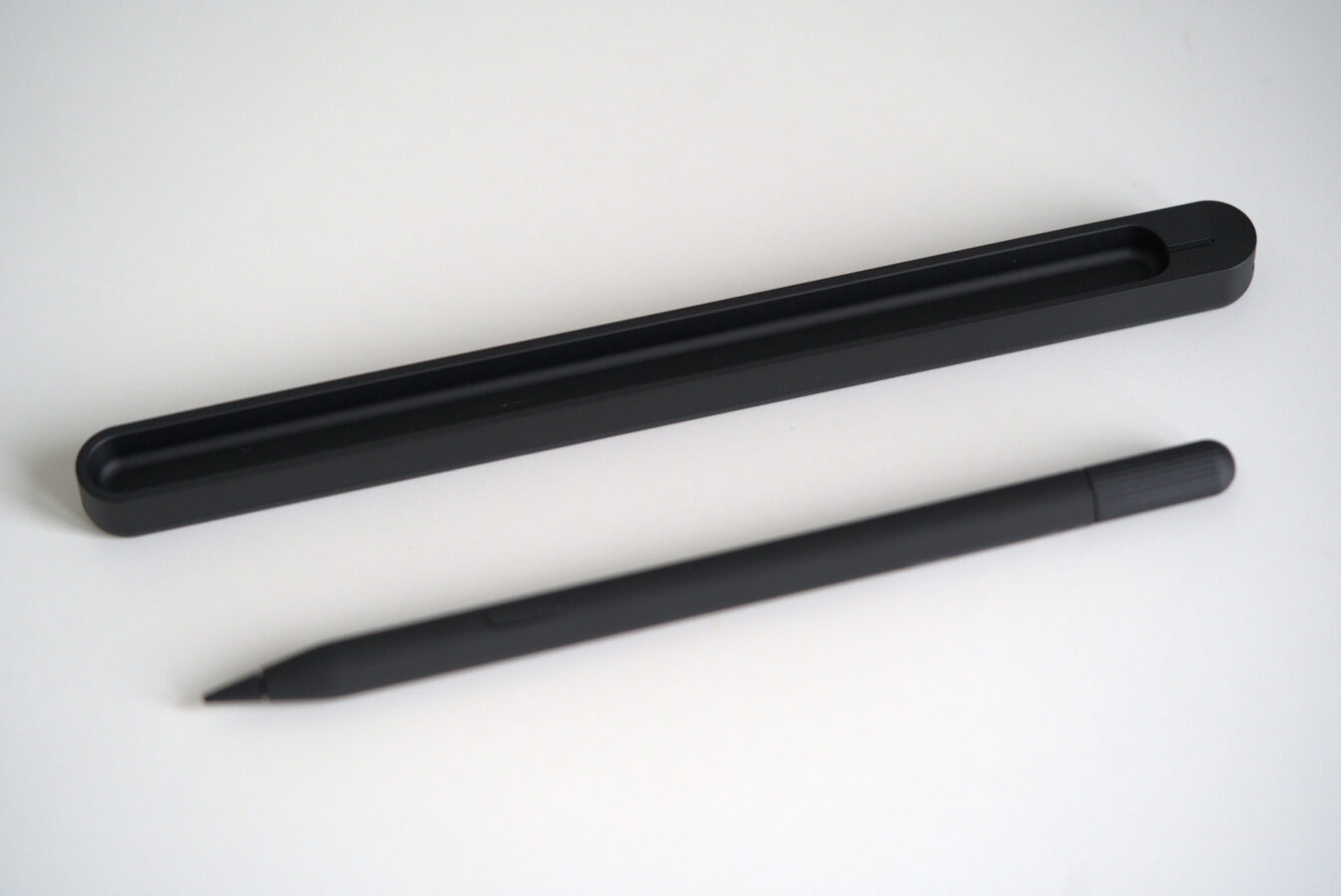 Zestaw obejmuje też 200-watowy zasilacz (niestety, duży i ciężki) oraz rysik z ładowarką – akcesoria są skrzętnie schowane w odpowiedniej przegródce, więc łatwo pominąć ich obecność.