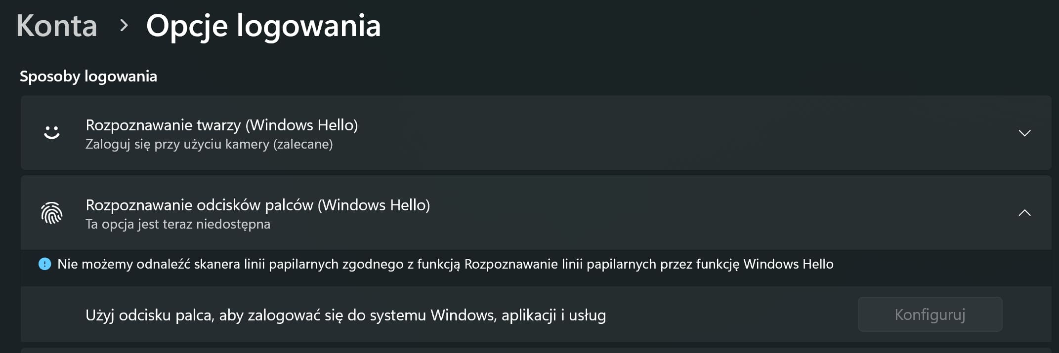 Jest za to kamerka Full HD z obsługą Windows Hello. I, tu kolejny brak, który według mnie jest warty odnotowania – brak choćby niewielkiej diodki obok kamerki, która informowałaby nas o tym, czy kamera jest włączona czy nie. Nie ma fizycznej zasuwki prywatyzującej, nie ma diody – jedyna opcja, by sprawdzić czy jest uruchomiona, to skorzystanie ze skrótu klawiszowego F10 (w ten sposób można ją szybko włączyć lub wyłączyć – a tuż obok jest włącznik mikrofonu).