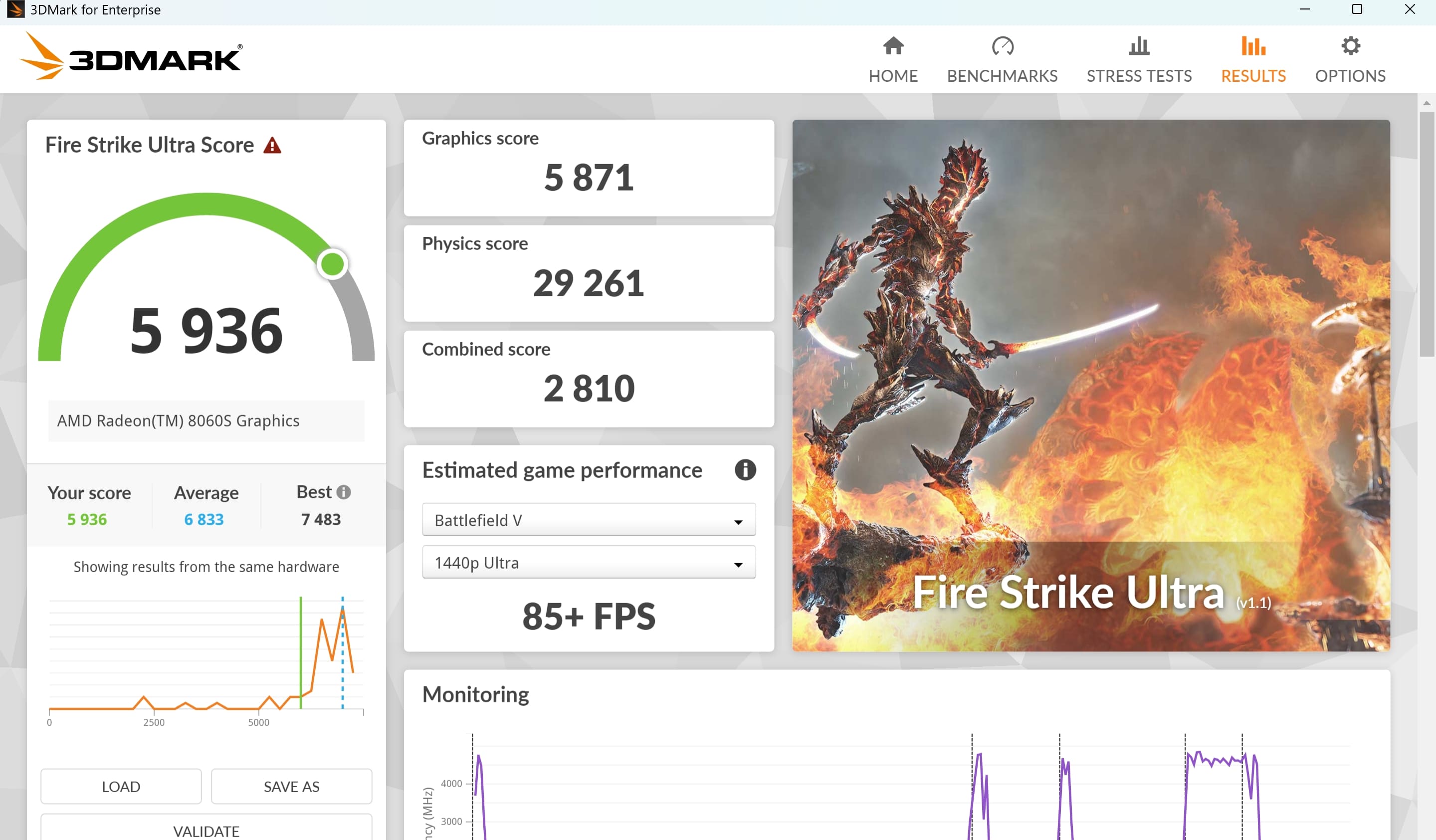 | Fire Strike Ultra | 5936 | 2464 | 1769 | 6061 |