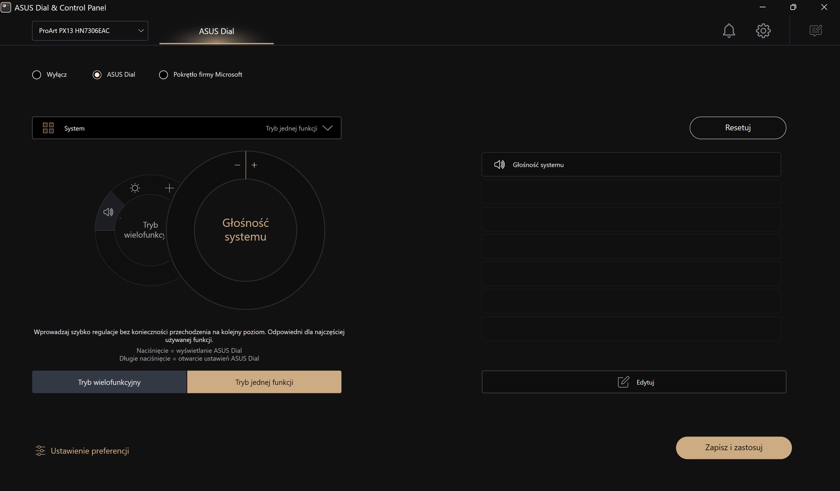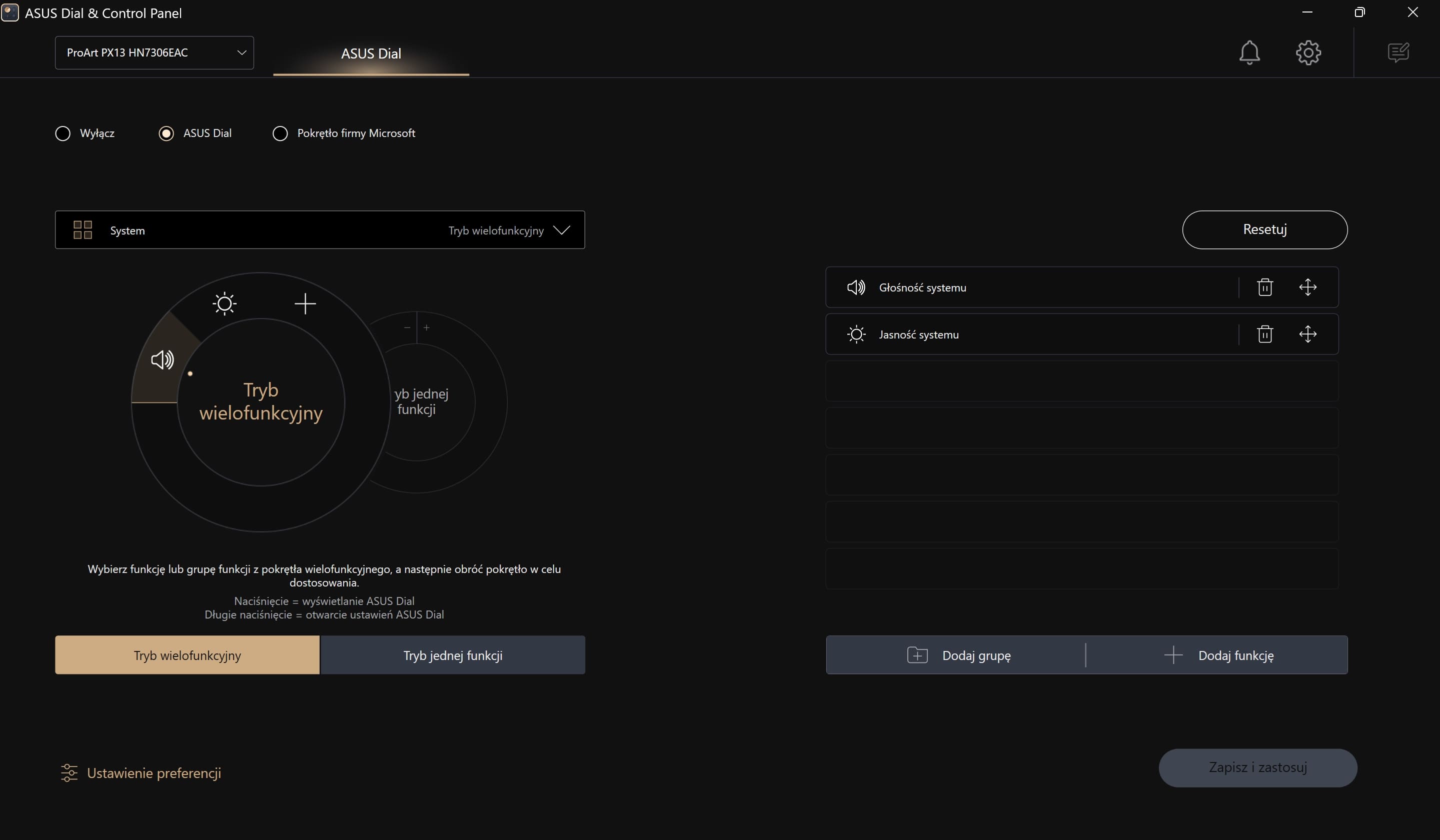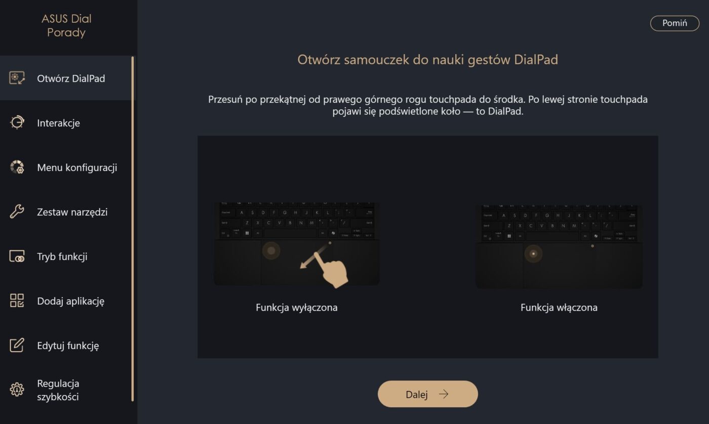 Touchpadowi też nie mogę nic zarzucić. Jest responsywny, działa bezproblemowo i obsługuje gesty multidotykowe. Ma też dodatkowy element, do którego użytkownicy laptopów z serii ProArt zdążyli się już przyzwyczaić. Mowa oczywiście o ASUS DialPad, który w tym przypadku jest dotykowy.