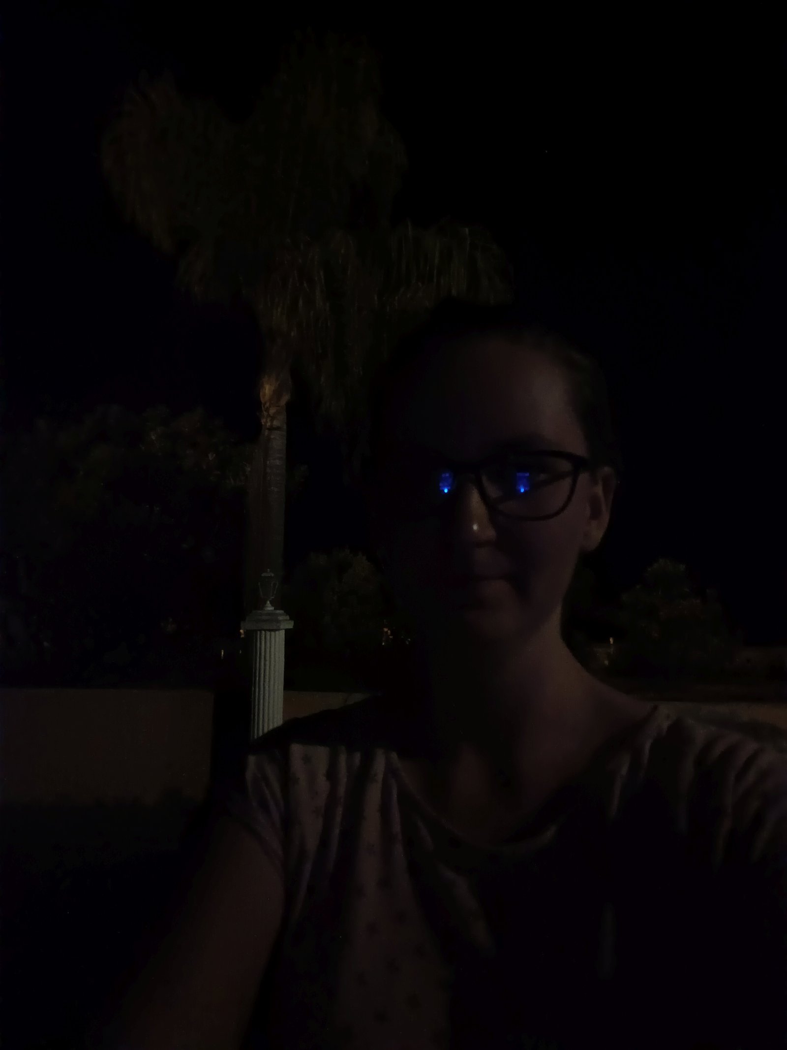 A jeśli chodzi o zdjęcia w nocy, to jest analogicznie, jak w przypadku nagrywania wideo – do dyspozycji są trzy tryby: automatyczny, aura i reflektor (podwójna lampa doświetlająca do selfie). Ostatnia opcja jest przeze mnie zalecana przez wzgląd na najbardziej naturalne odwzorowanie kolorów po doświetleniu kadru.