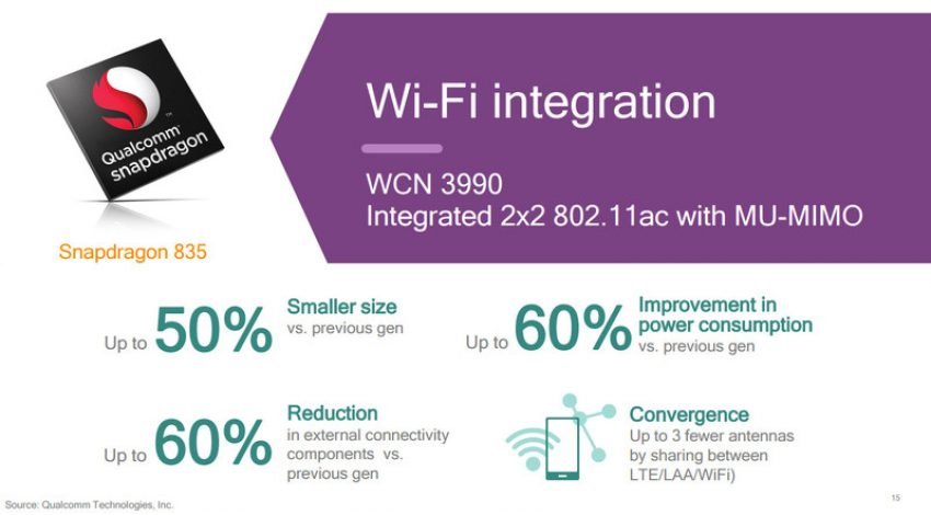 Snapdragon 835 jest też pierwszym chipem, który uzyskał certyfikat Bluetooth 5. Pozwoli to na przesyłanie plików znacznie szybciej – nowy standard zapewnia dwukrotnie większą przepustowość, czterokrotnie większy zasięg i osiem razy większą pojemność pojedynczej paczki wiadomości, w porównaniu z Bluetooth 4.2.