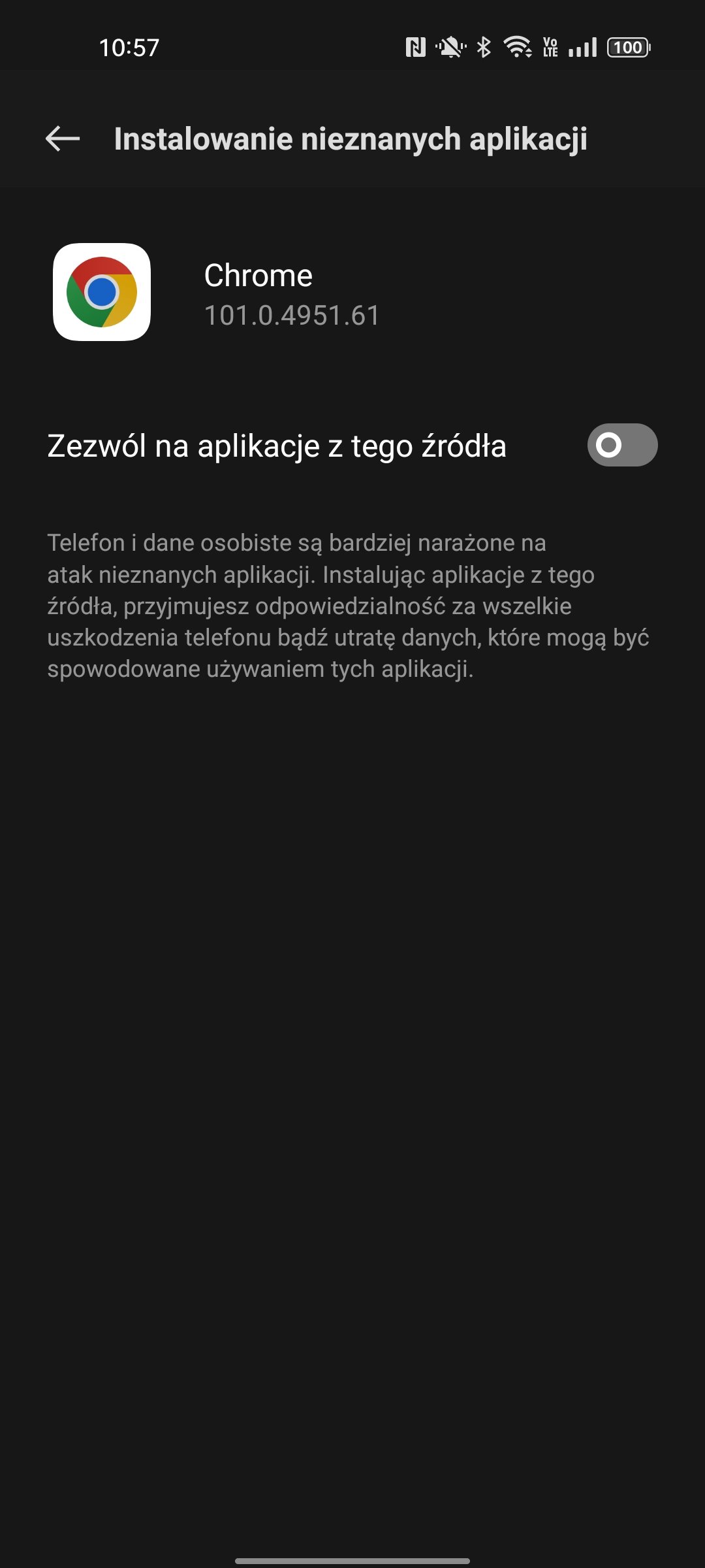 Instalując aplikacje z oficjalnego sklepu mamy pewność, że jest ona wolna od złośliwego oprogramowania. Ściąganie programów spoza domyślnych źródeł wiąże się z ryzykiem, o czym system poinformuje nas jeśli będziemy chcieli skorzystać z takiego oprogramowania. Przykład poniżej.