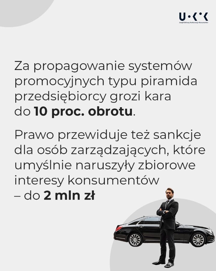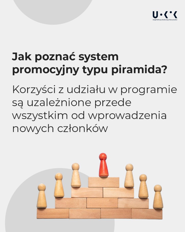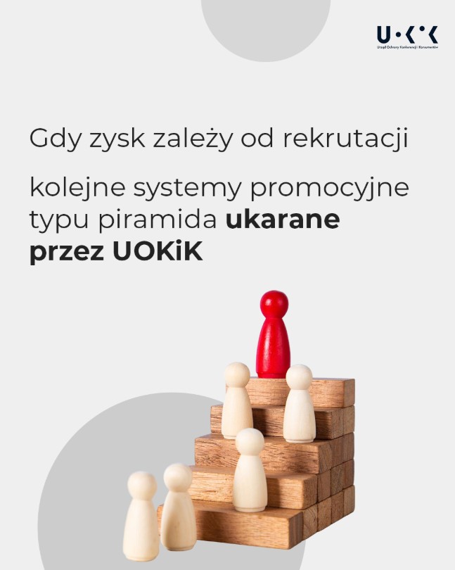 Piramida (w przeciwieństwie do większości MLM) w polskim i unijnym prawie jest uznawana za nielegalną. Warto wiedzieć, że zakazane jest nie tylko zakładanie, ale też prowadzenie tego typu systemu promocyjnego. Teraz UOKiK zachęca – konsumencie, nie bądź budowniczym piramidy.