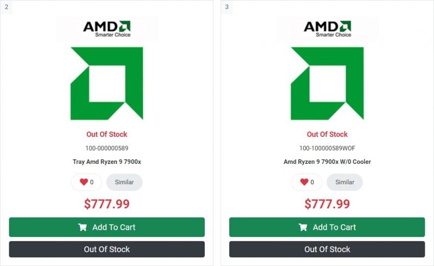 - Ryzen 9 7900X – 778 dolarów kanadyjskich (~ 2770 złotych),