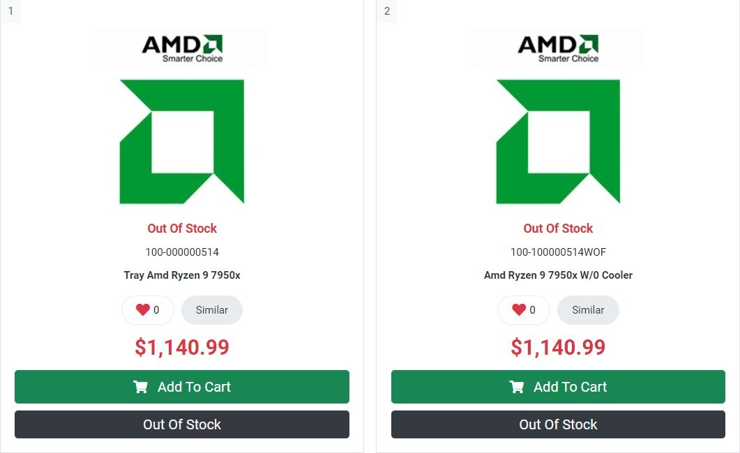 Jeżeli porównamy obecne ceny starszej (obecnej) generacji desktopowych procesorów Ryzen 5000 w tym samym sklepie, zauważamy, że topowy model AMD Ryzen 9 7950X jest o 158 dolarów kanadyjskich droższy niż poprzednik. Natomiast 9 7900X jest 13 dolarów tańszy niż 9 5900X, Ryzen 7 7700X 216 dolarów droższy niż 7 5700X, a, co ciekawe, 5 7600X o 15 dolarów tańszy niż 5 5600X.